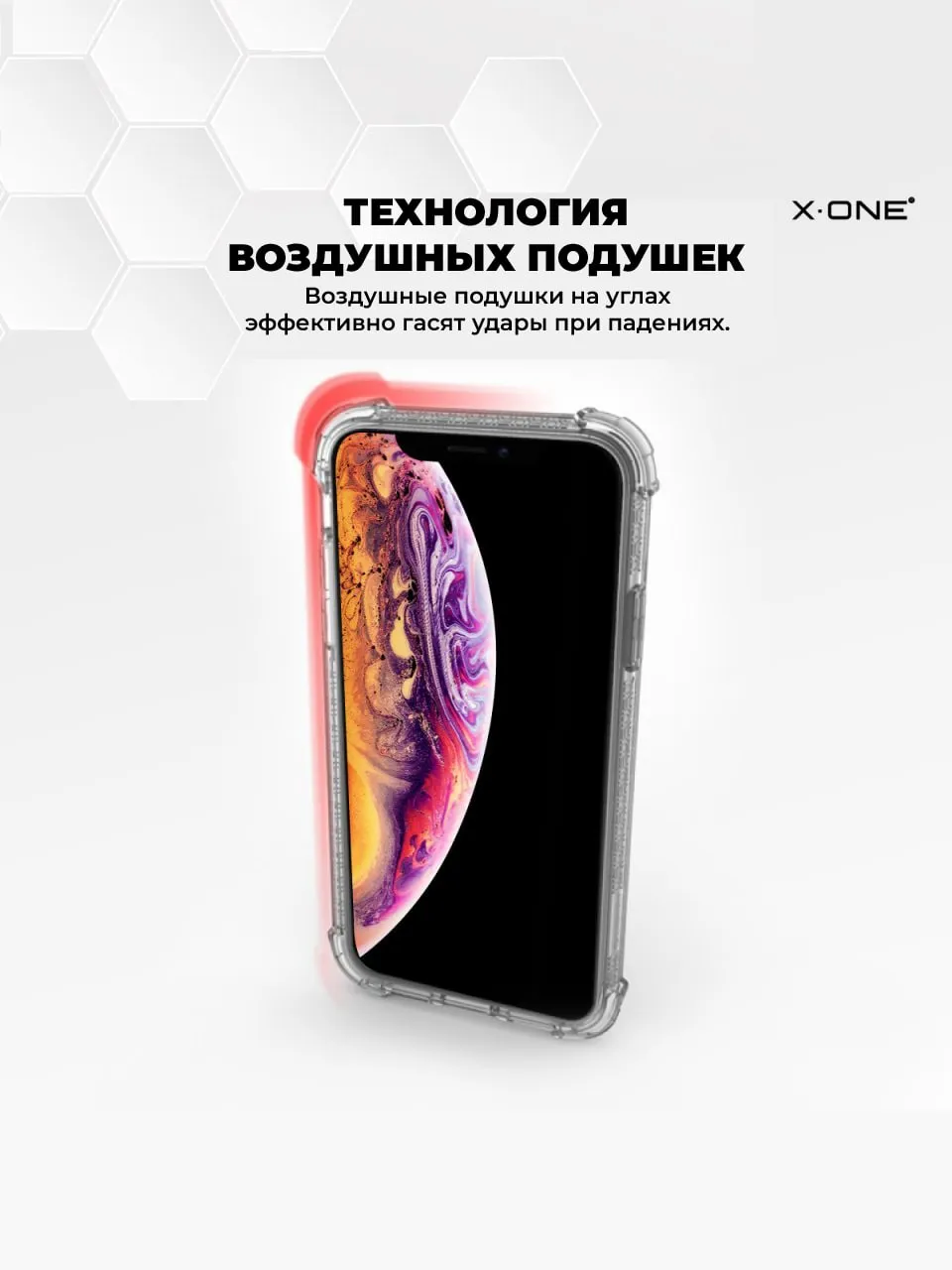 Прозрачный чехол X-ONE DropGuard PRO с текстурированным боковым корпусом.
