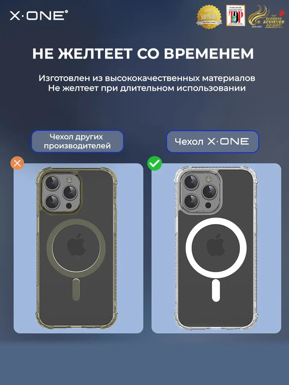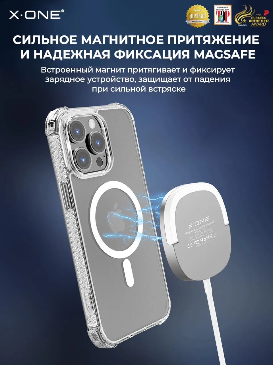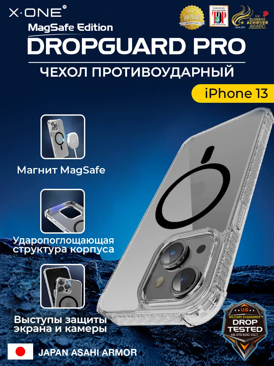 Прозрачный чехол X-ONE DropGuard PRO MagSafe edition с текстурированным боковым корпусом и магнитом MagSafe.