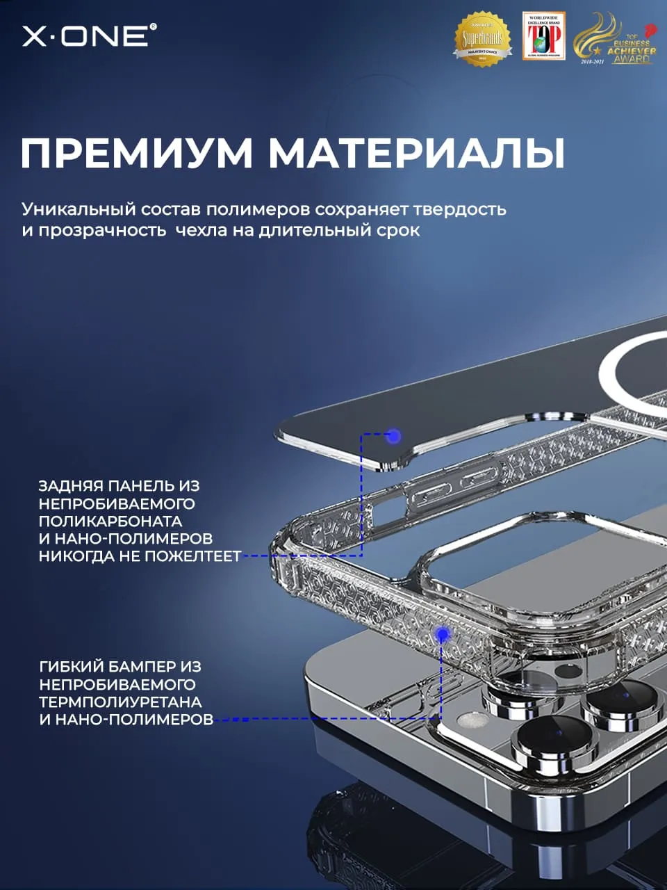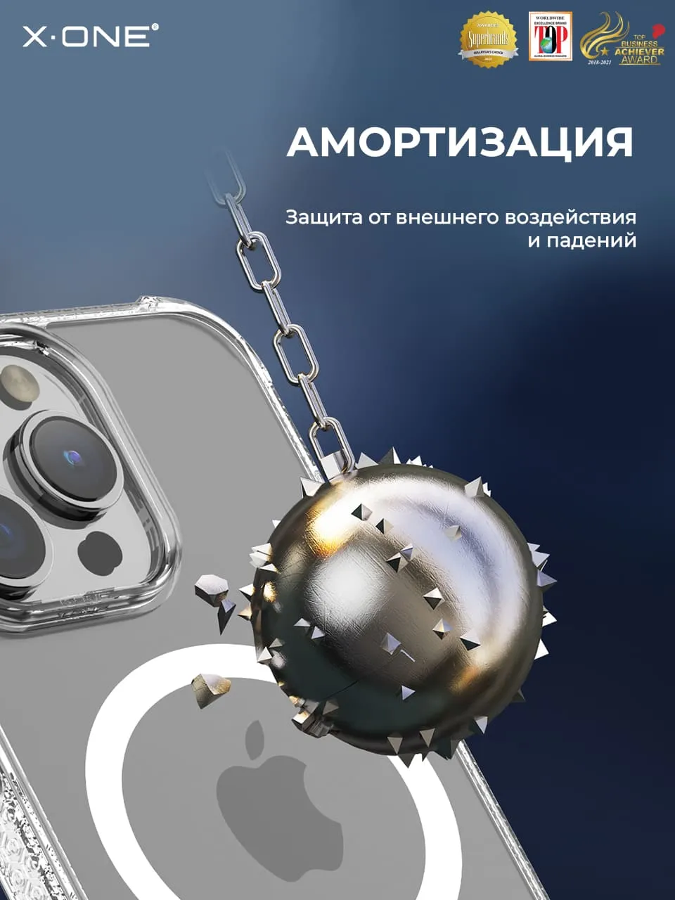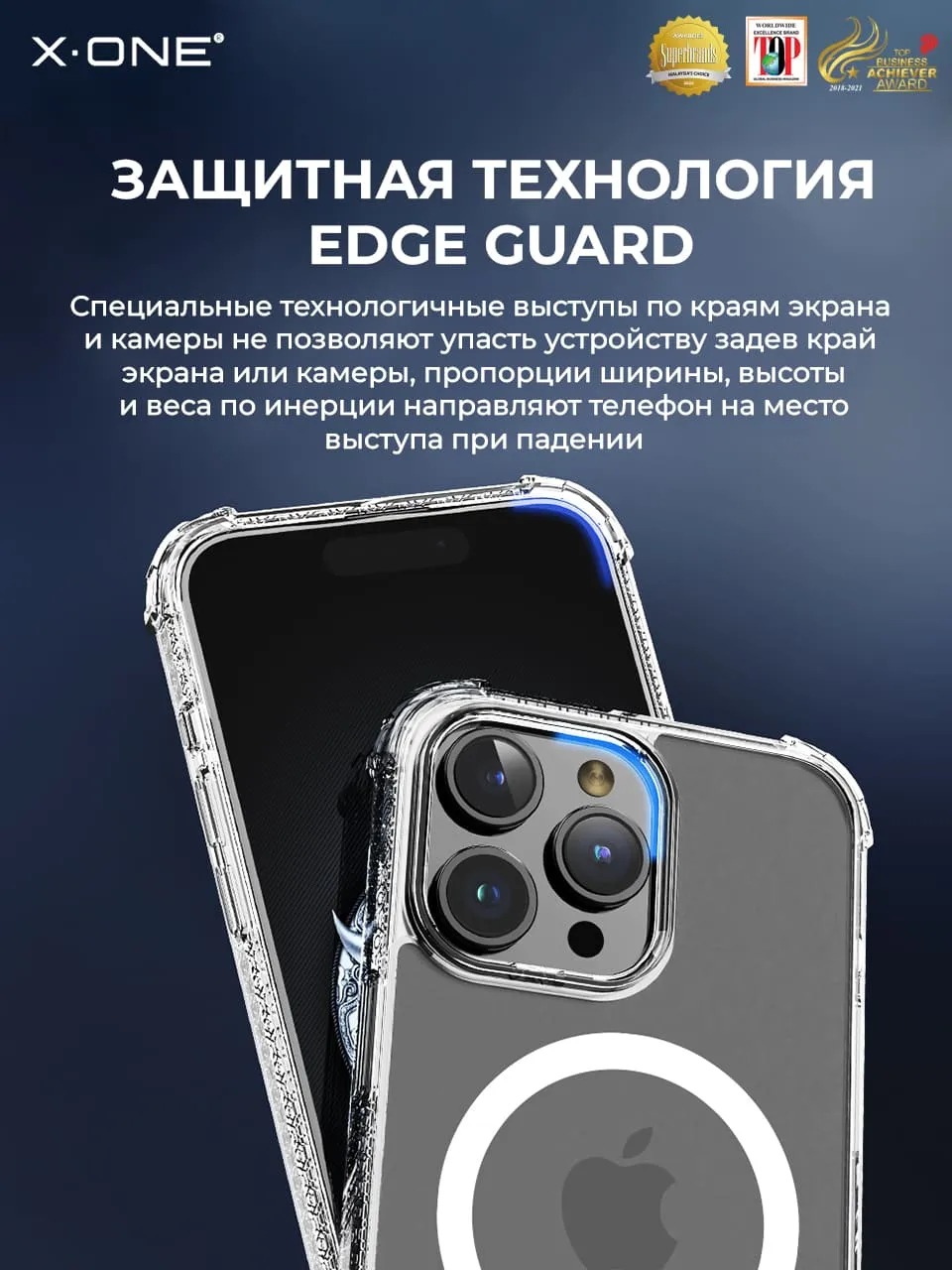 Прозрачный чехол X-ONE DropGuard PRO MagSafe с текстурированным боковым корпусом и магнитом MagSafe для беспроводной зарядки.