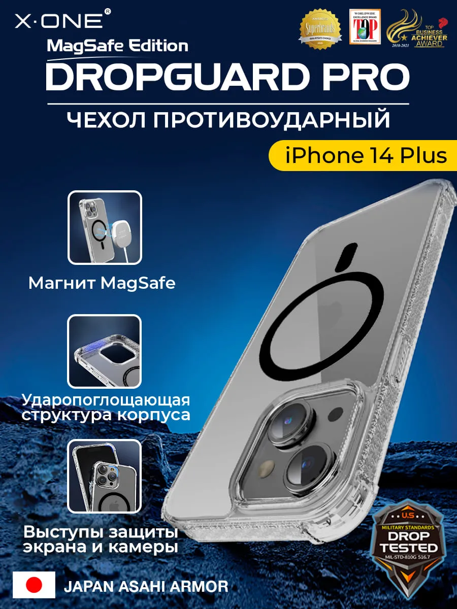 Чехол iPhone 14 Plus X-ONE DropGuard PRO MagSafe - текстурированный прозрачный корпус пепельного оттенка