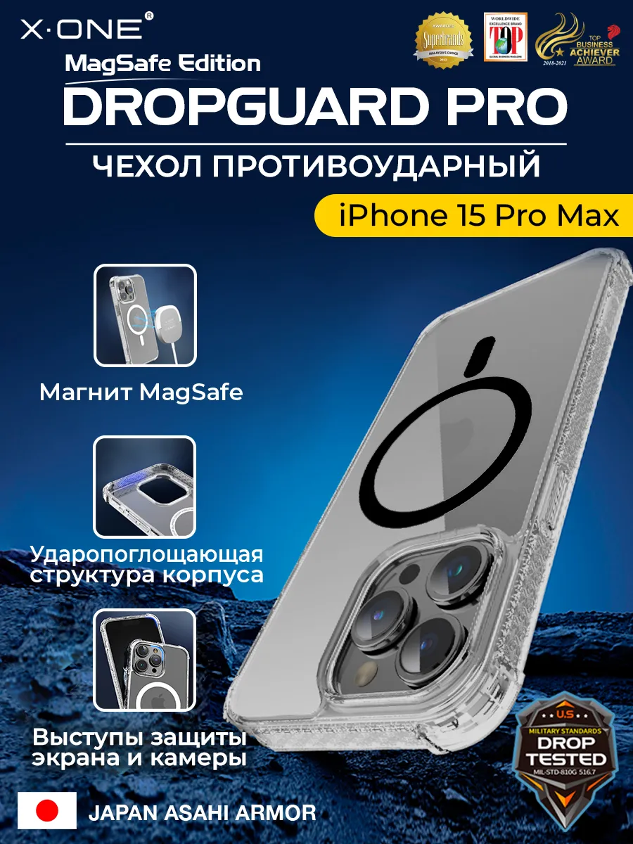 Прозрачный чехол X-ONE DropGuard PRO MagSafe с текстурированным боковым корпусом и магнитом MagSafe для беспроводной зарядки.
