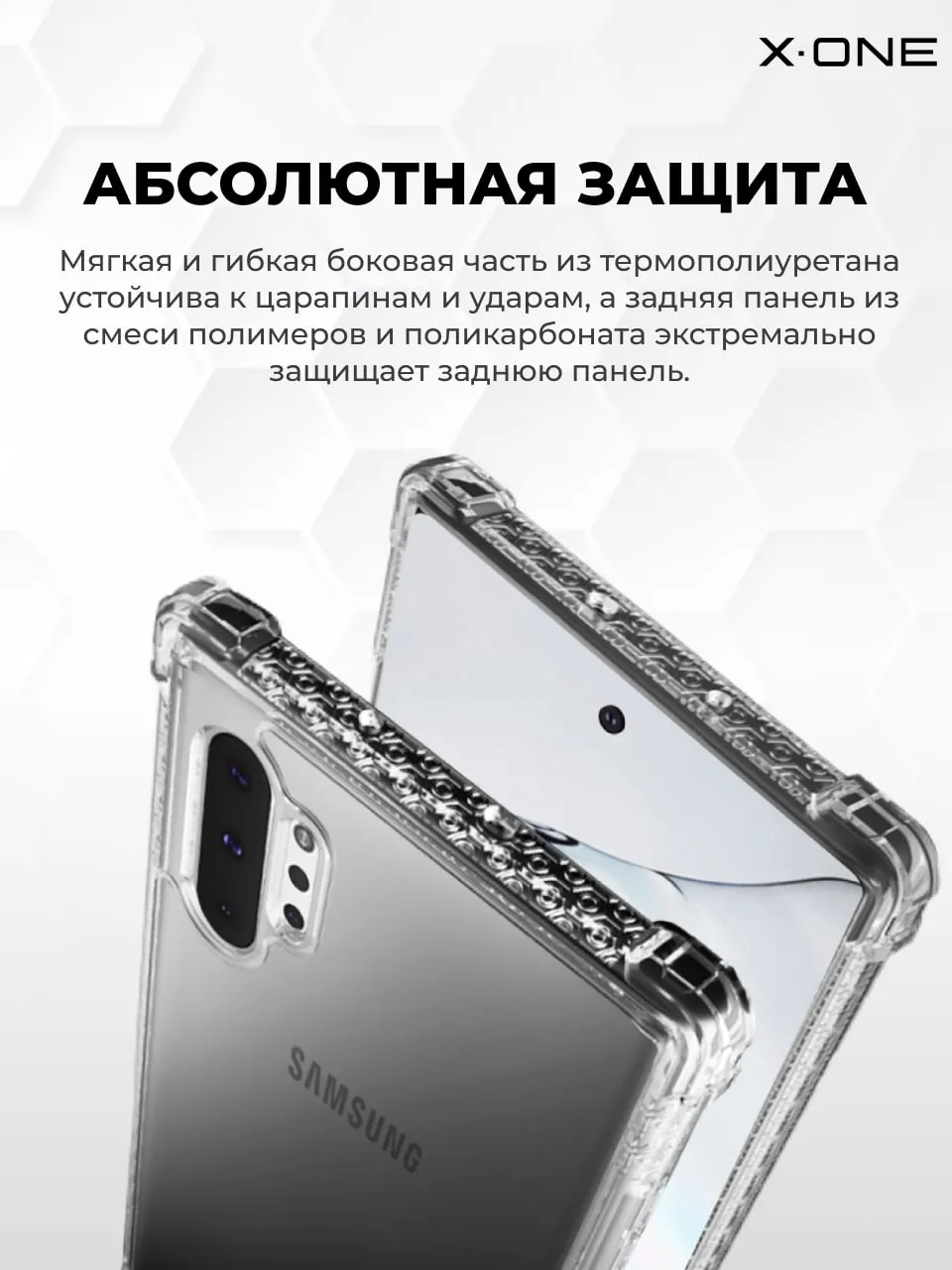 Чехол Samsung Galaxy Note 10 X-ONE DropGuard PRO - текстурированный прозрачный корпус пепельного оттенка