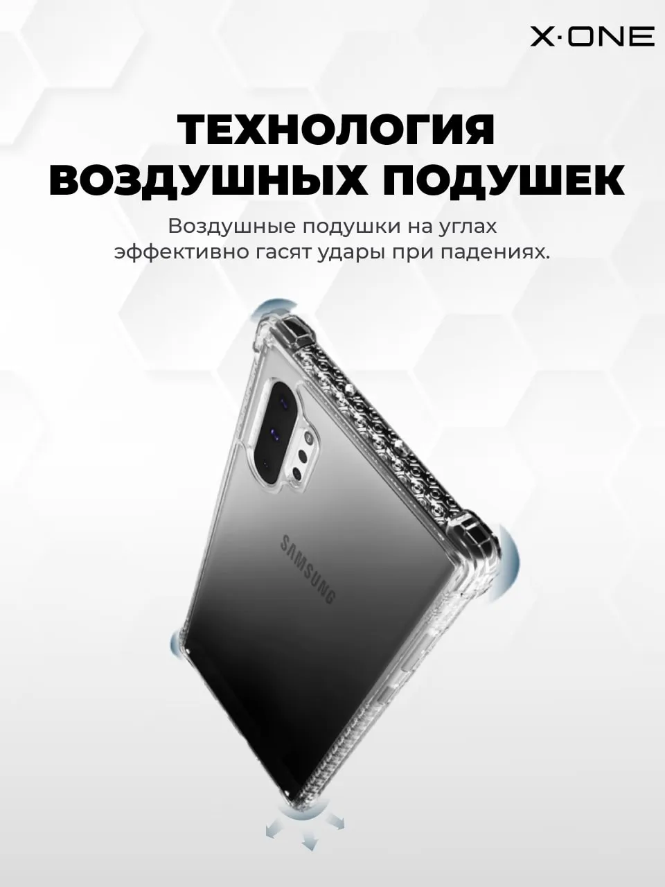 Чехол Samsung Galaxy Note 10+ X-ONE DropGuard PRO - текстурированный прозрачный корпус пепельного оттенка