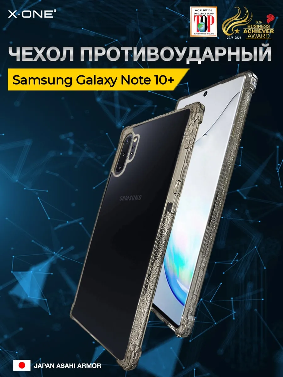 Чехол Samsung Galaxy Note 10+ X-ONE DropGuard 2.0 - прозрачная задняя панель и черный матовый Soft Touch бампер