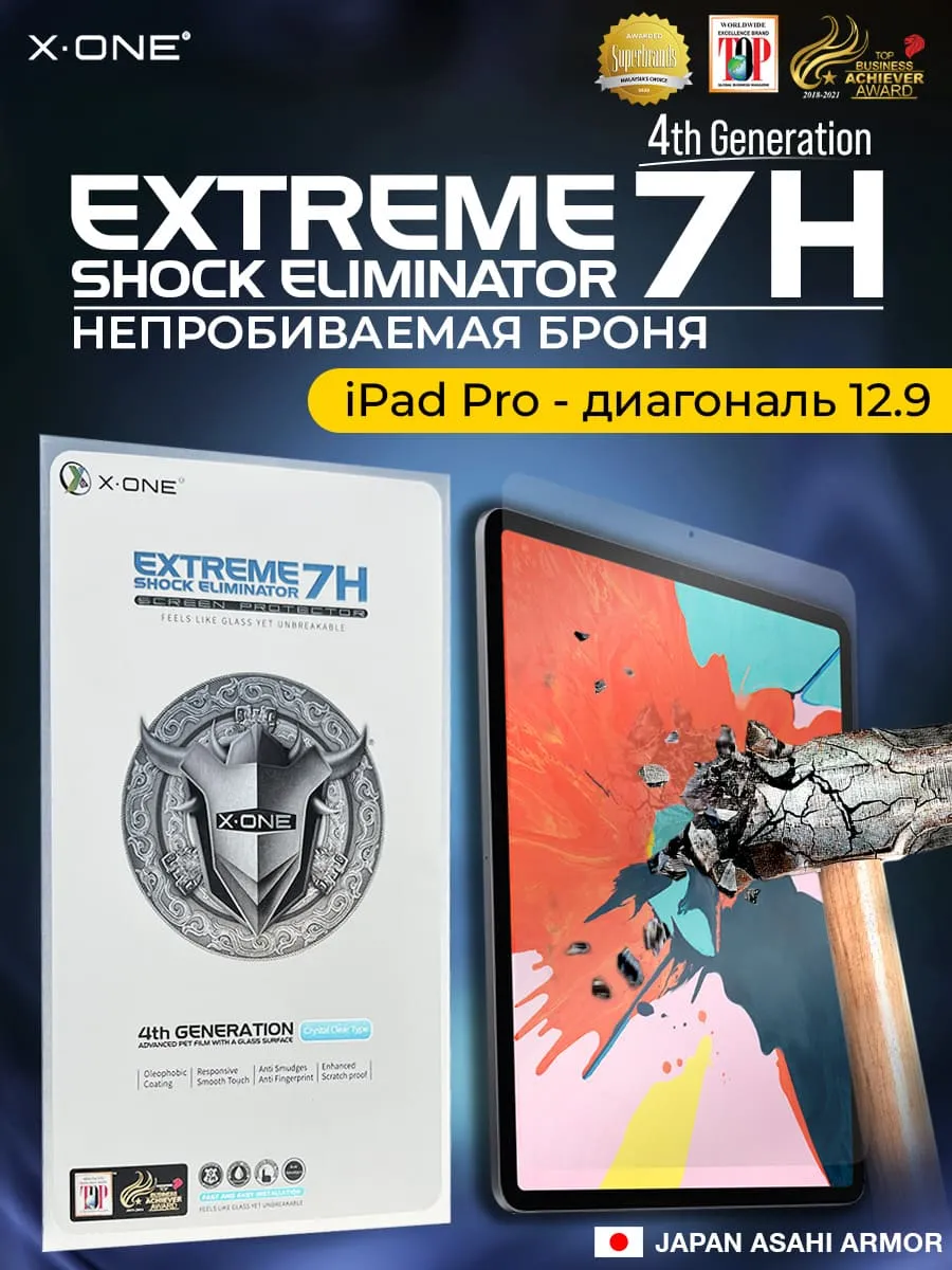 Непробиваемая бронепленка на планшет iPad Pro с диагональю экрана 12.9 X-ONE Extreme 7H Shock Eliminator 4-го поколения