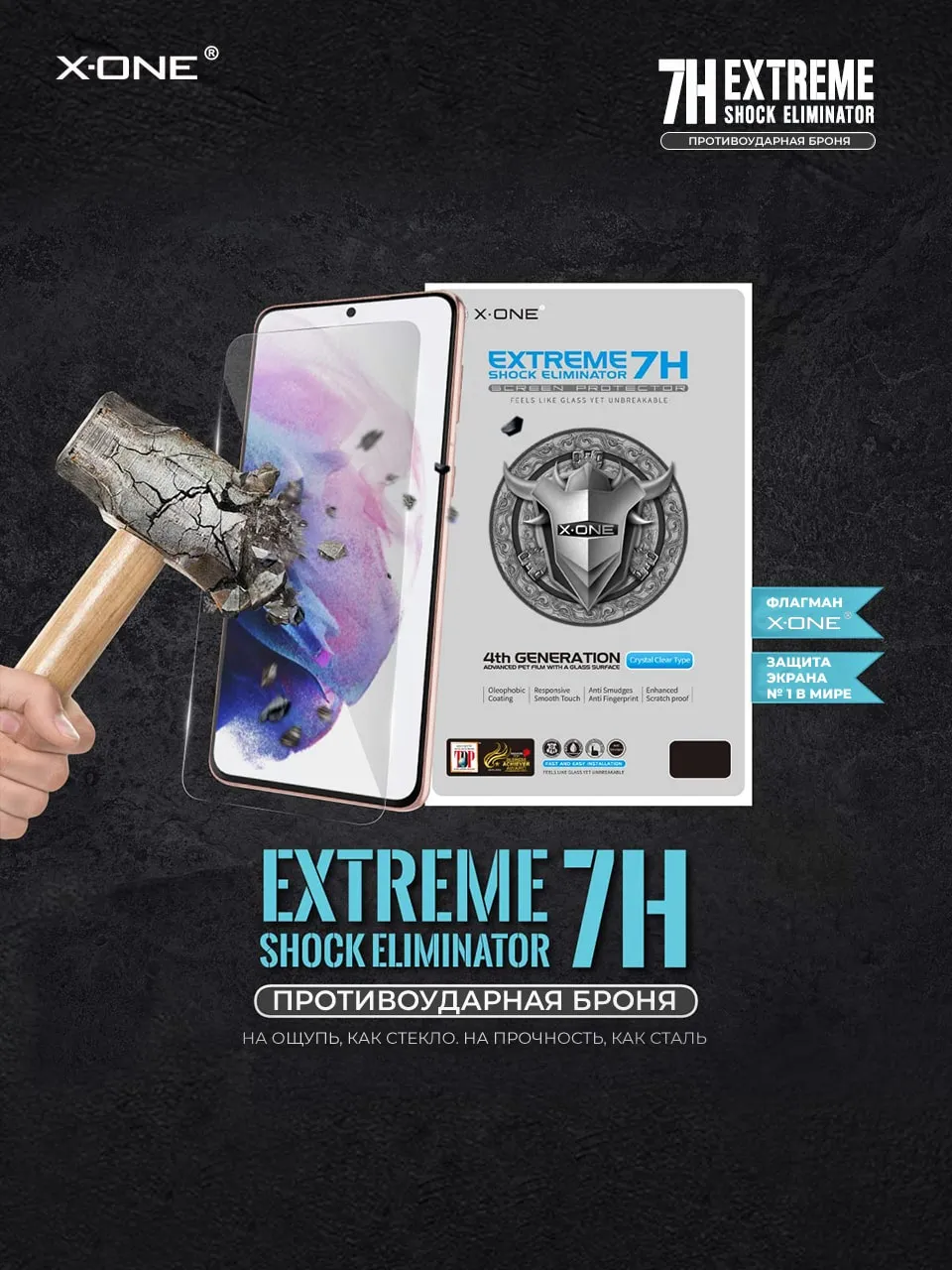 Противоударная бронепленка X-ONE Extreme Shock Eliminator 4-го поколения, толщиной всего 0.2 мм., на ощупь и по плотности, как стекло — защитная пленка.