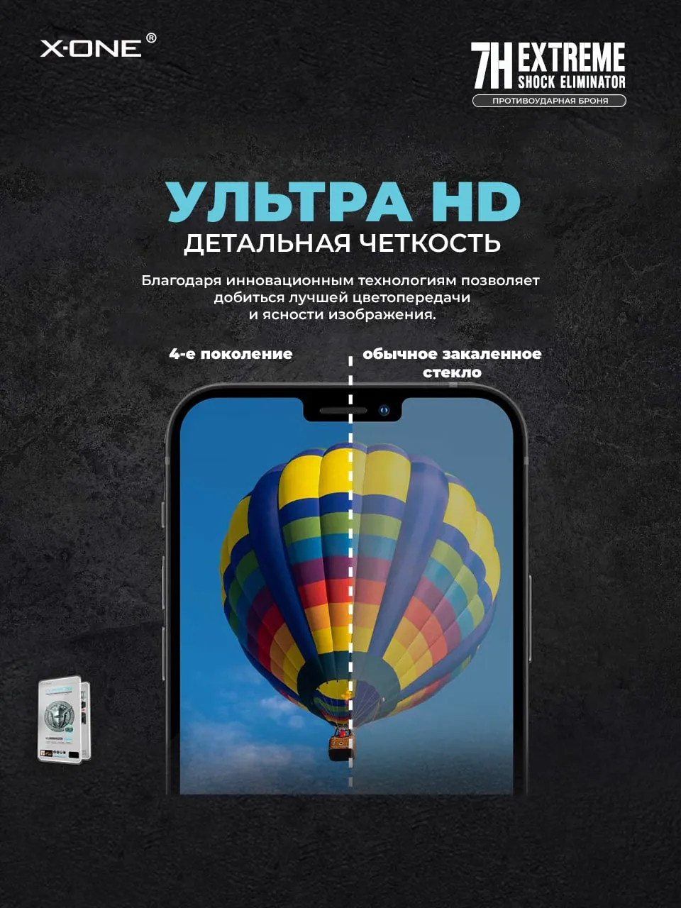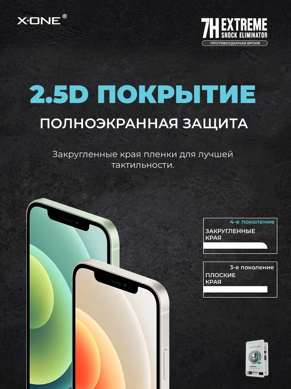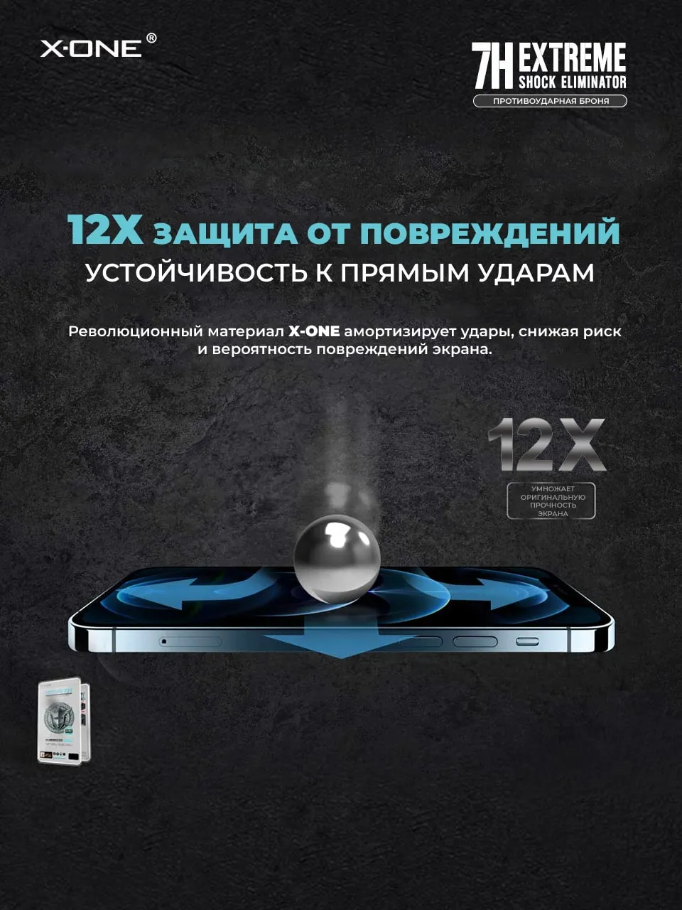 Противоударная бронепленка с гарантией на экран вашего iPhone - 4 месяца X-ONE Extreme Shock Eliminator 4-го поколения, на ощупь и по плотности, как стекло — защитная пленка.