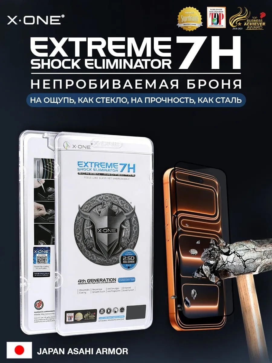 Противоударная бронепленка с гарантией на экран вашего iPhone - 4 месяца X-ONE Extreme Shock Eliminator 4-го поколения, на ощупь и по плотности, как стекло — защитная пленка.