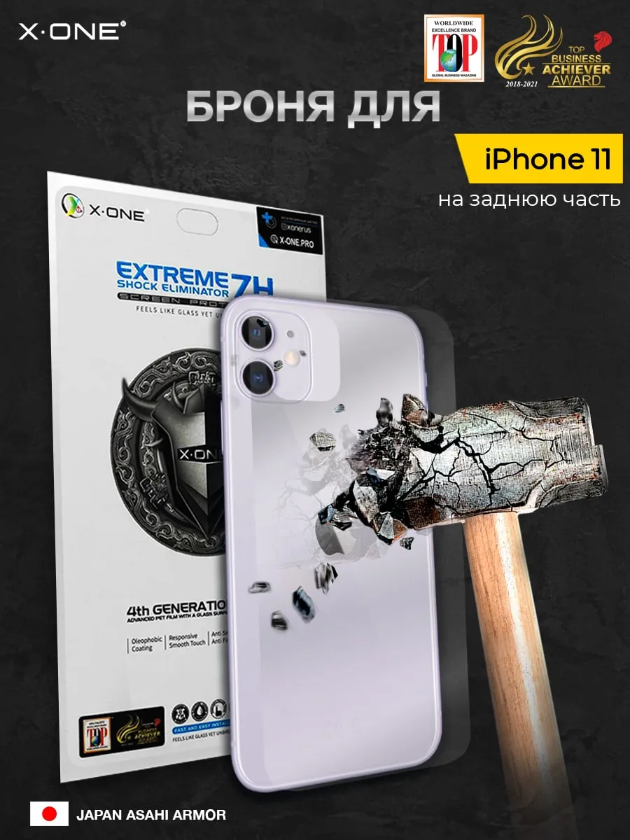 Непробиваемая бронепленка iPhone 11 X-ONE Extreme 7H Shock Eliminator for Back 4-го поколения / на заднюю панель