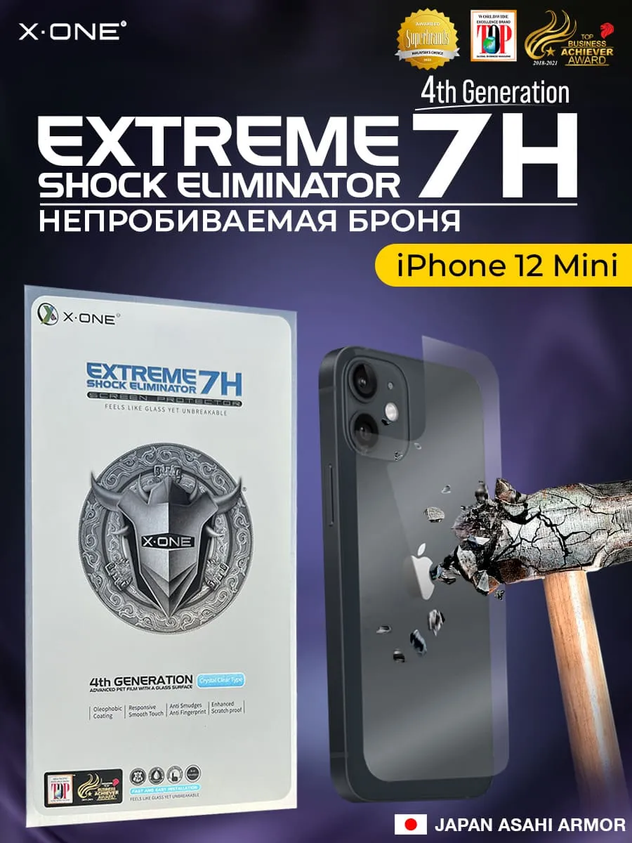 Непробиваемая бронепленка iPhone 12 Mini X-ONE Extreme 7H Shock Eliminator for Back 4-го поколения / на заднюю панель