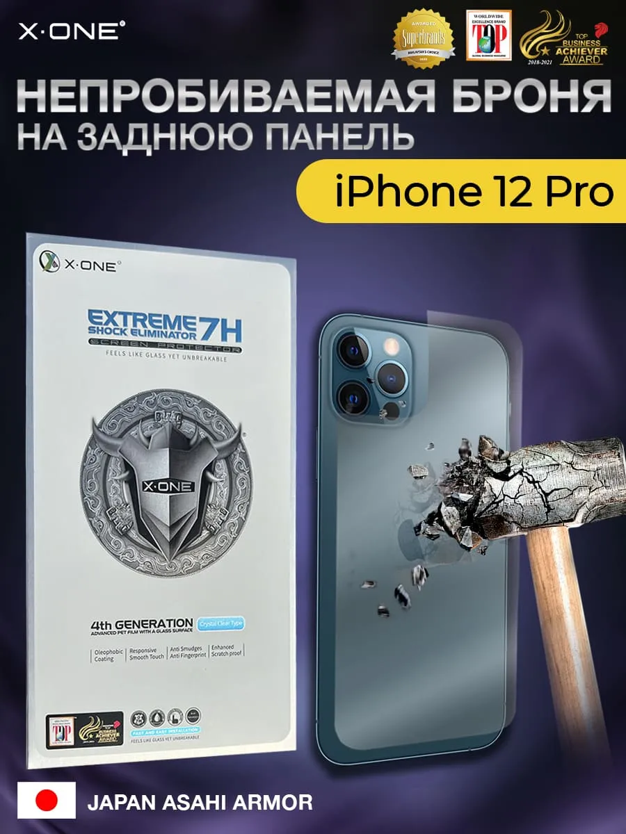 Непробиваемая бронепленка iPhone 12 Pro X-ONE Extreme 7H Shock Eliminator for Back 4-го поколения / на заднюю панель