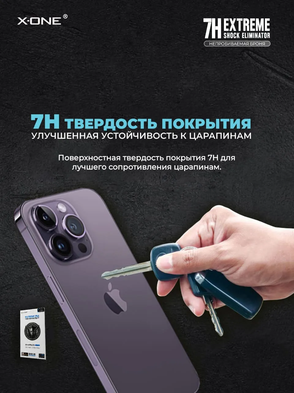Непробиваемая бронепленка iPhone 14 Pro Max X-ONE Extreme 7H Shock Eliminator for Back 4-го поколения / на заднюю панель