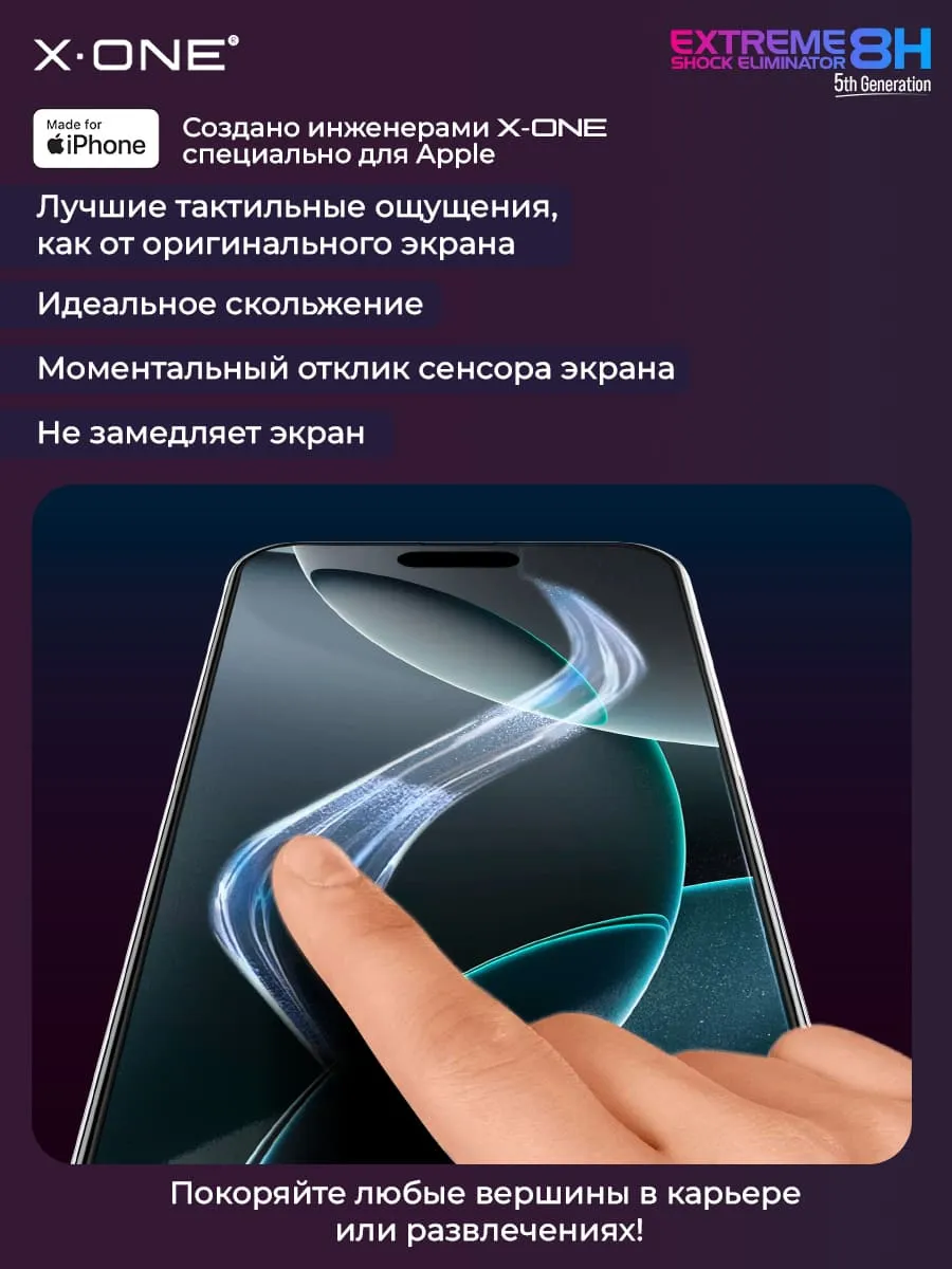 Противоударная бронепленка с гарантией на экран вашего iPhone - 5 месяцев X-ONE Extreme Shock Eliminator 5-го поколения, на ощупь, как экран, по плотности, как стекло — защитная пленка.