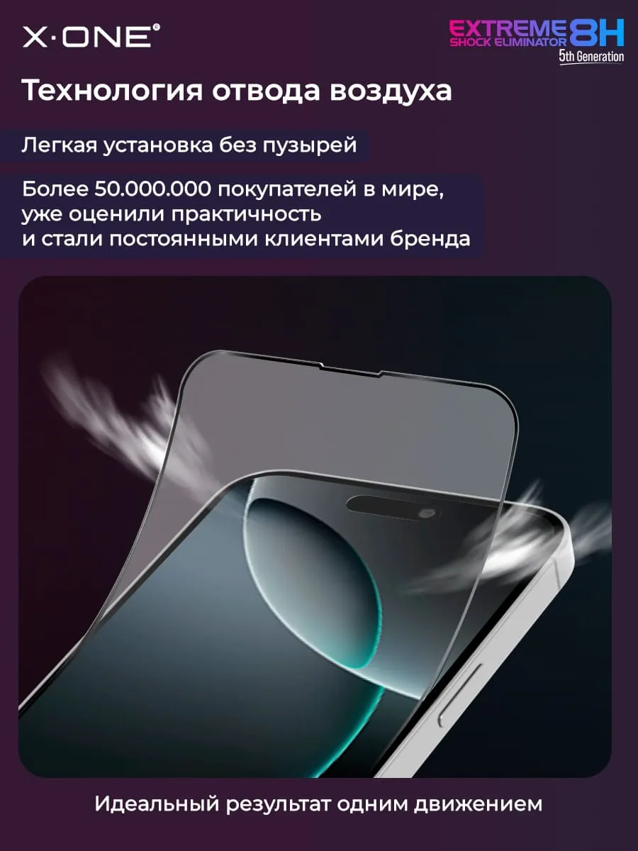 - Комплектация: Фирменный кейс - упаковка X-ONE, защитная пленка - 1 шт., салфетка из микрофибры - 1 шт., салфетка спиртовая - 1 шт., скребок для разглаживания пленки - 1 шт., стикеры пылесборные/установочные, QR код с видео-инструкцией по установке на упаковке