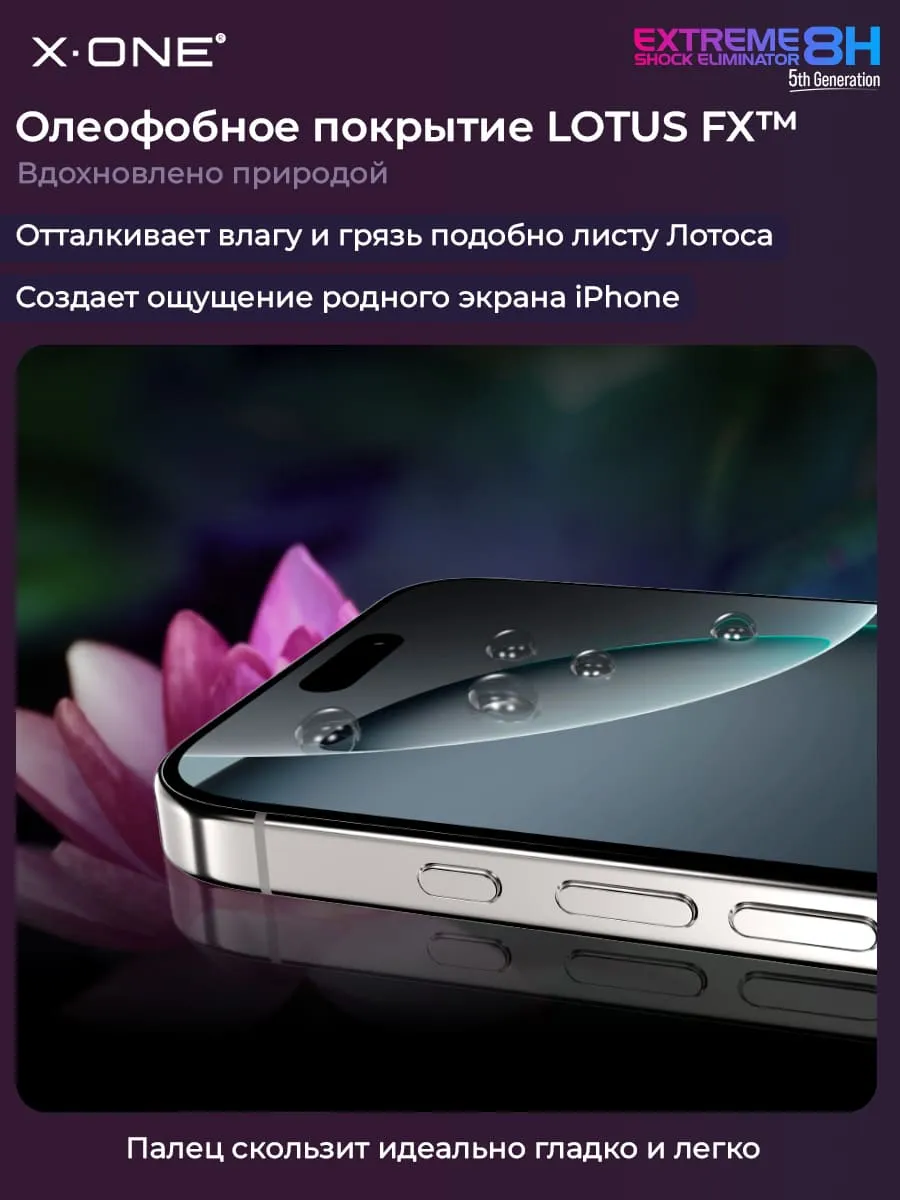 Наслаждайтесь стеклянным скольжением экрана с олеофобным покрытием LotusFX, создает поверхность сопротивляющуюся маслу и размазыванию, поверхность остается более четкой дольше, обеспечивает более длительный срок службы защиты экрана телефона, позволяет с лёгкостью содержать экран в чистоте.