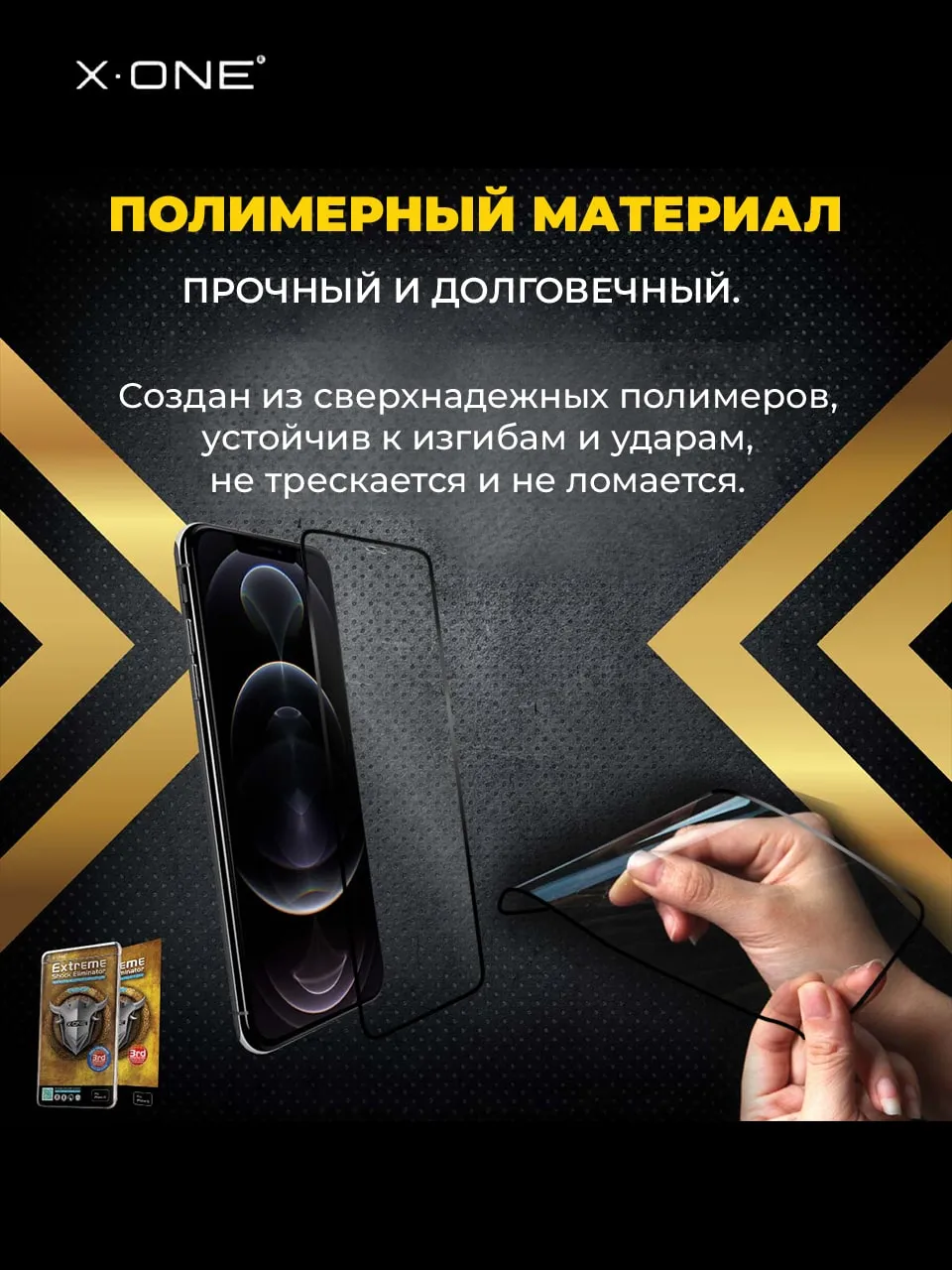 Противоударная бронепленка X-ONE Extreme Shock Eliminator 3-го поколения, на ощупь и по плотности, как стекло — защитная пленка.