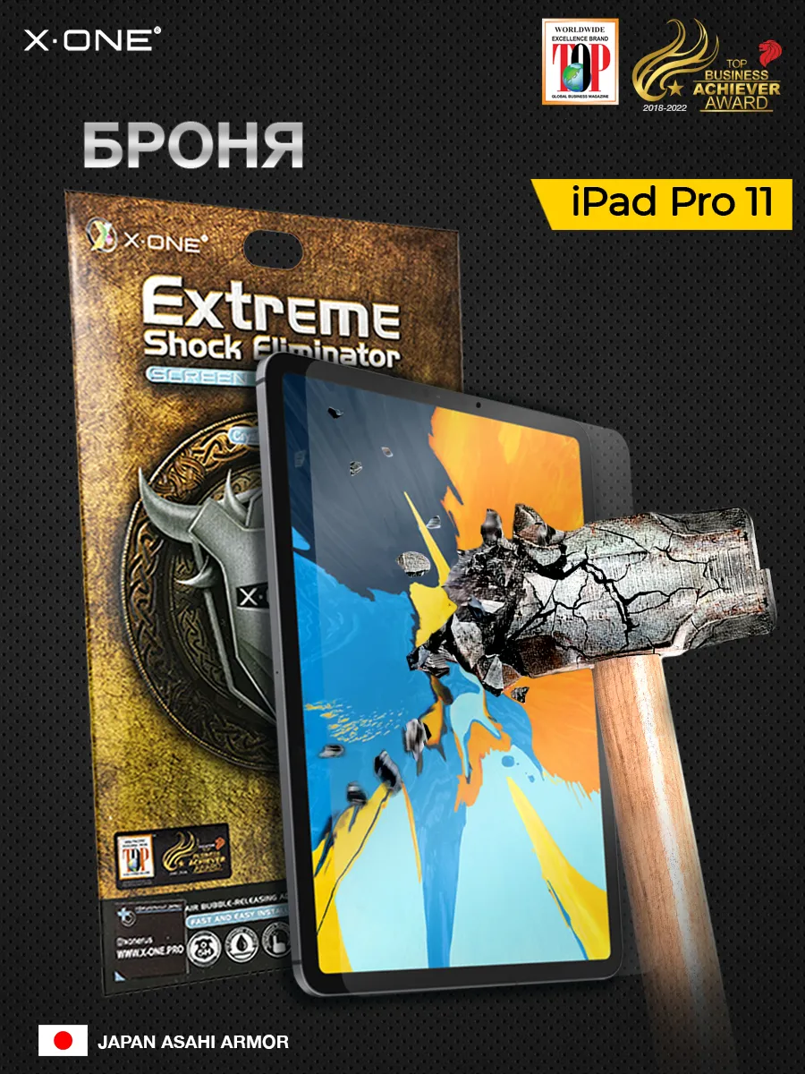 Непробиваемая бронепленка на планшет iPad Pro с диагональю экрана 11 X-ONE Extreme Shock Eliminator 3-го поколения на экран