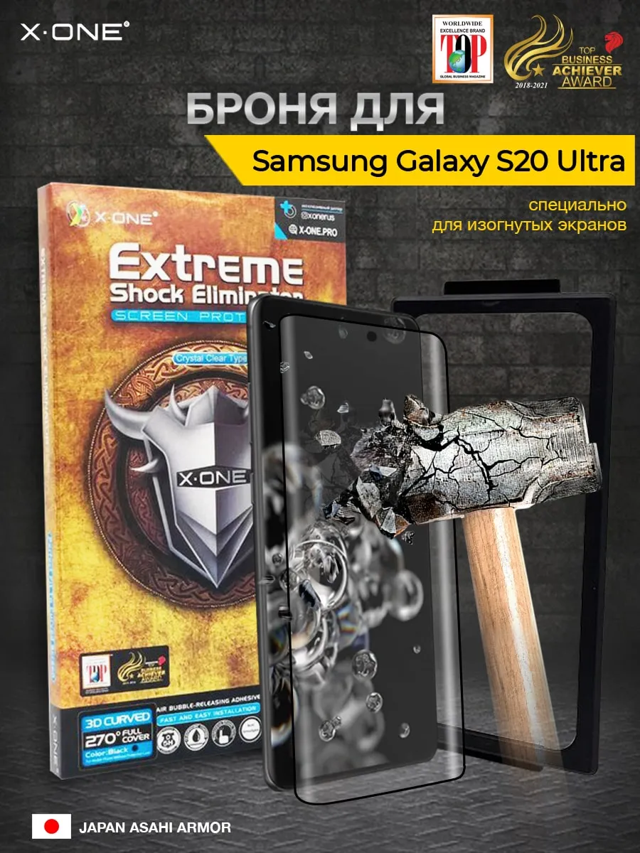 Непробиваемая бронепленка Samsung Galaxy S20 Ultra X-ONE Extreme Shock Eliminator 3D / изогнутый экран