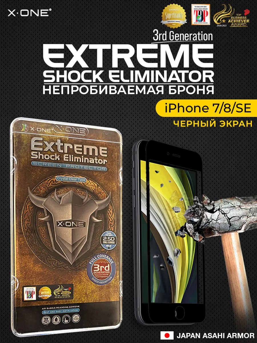 Непробиваемая бронепленка iPhone 7/8/SE черный экран X-ONE Extreme Shock Eliminator 3-rd generation