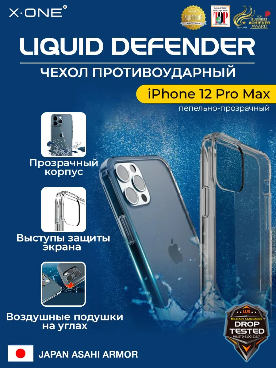 Чехол iPhone 12 Pro Max X-ONE Liquid Defender - пепельно-прозрачный