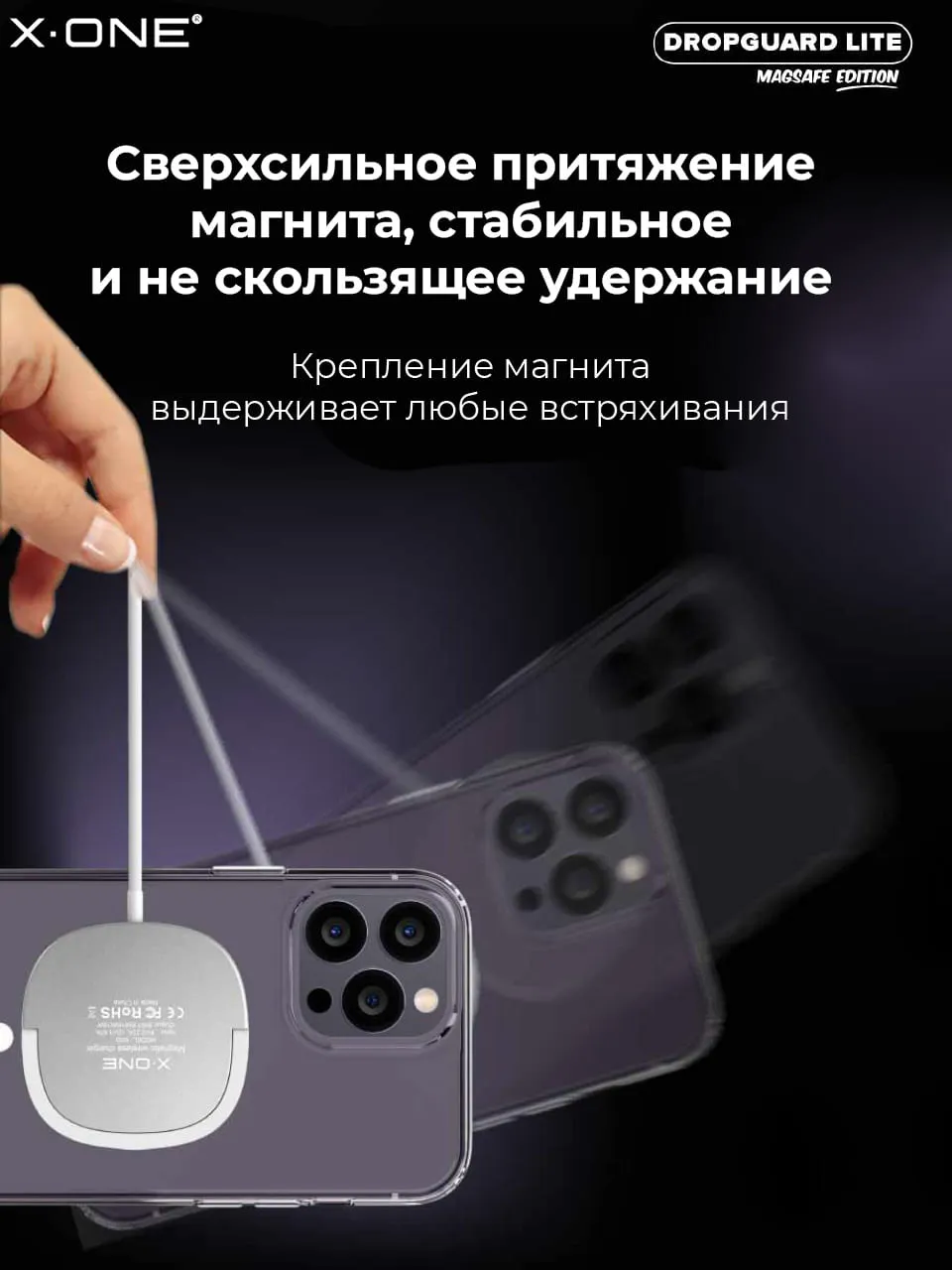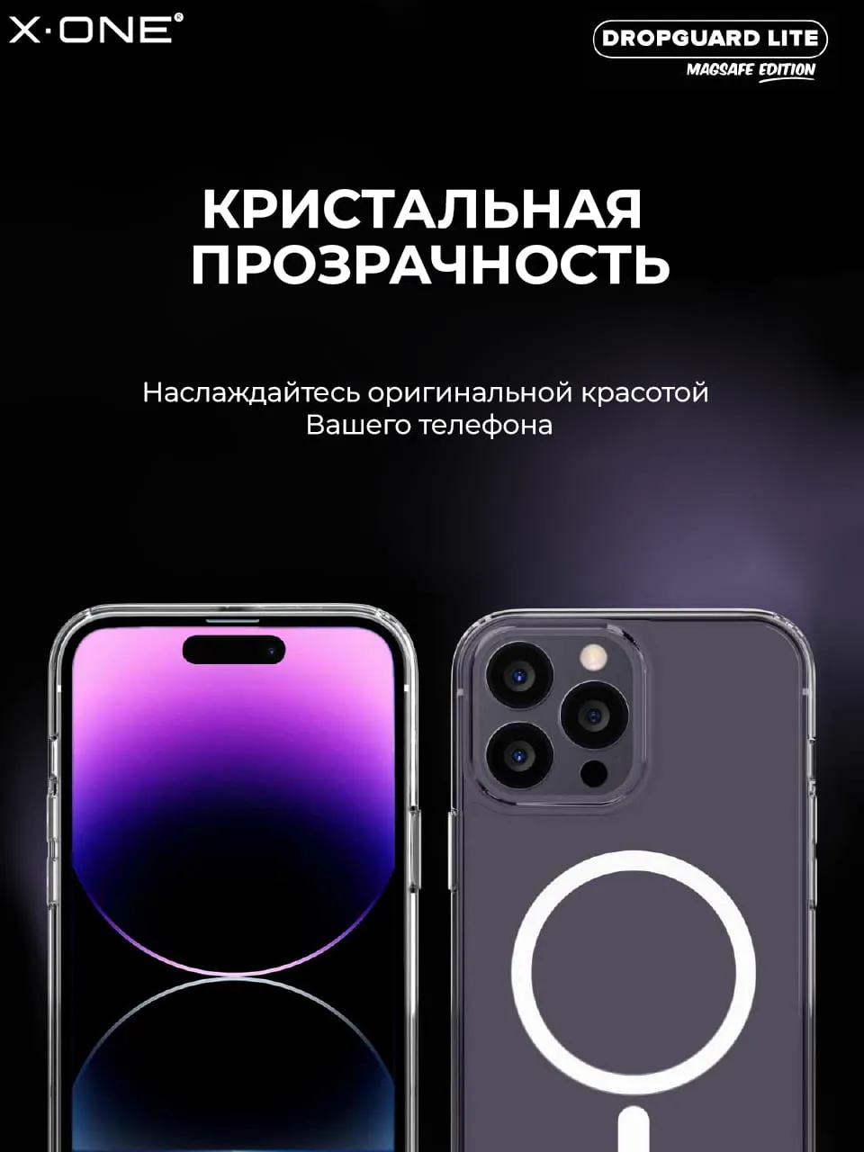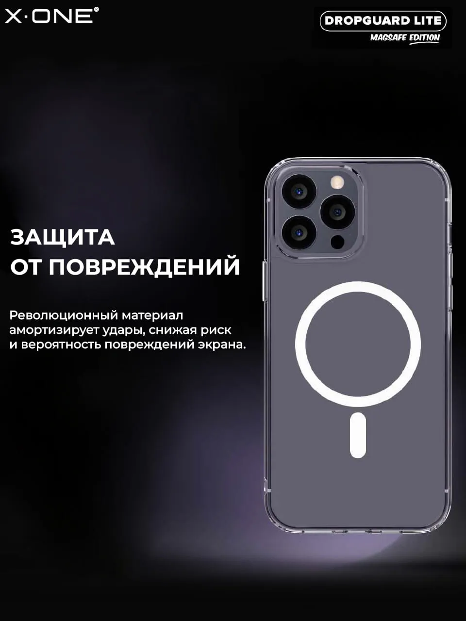 Прозрачный чехол X-ONE Liquid Defender MagSafe edition с магнитом MagSafe.