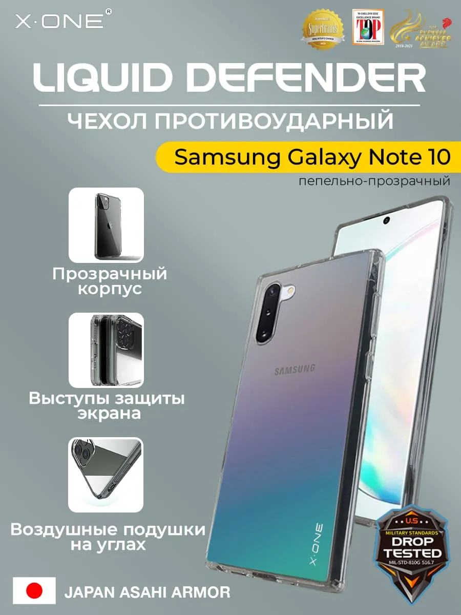 Чехол Samsung Galaxy Note 10 X-ONE Liquid Defender - пепельно-прозрачный