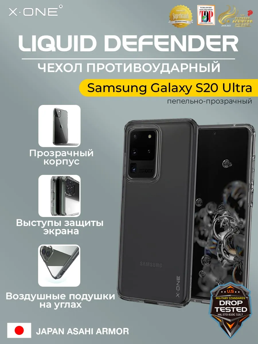 Чехол Samsung Galaxy S20 Ultra X-ONE Liquid Defender - пепельно-прозрачный
