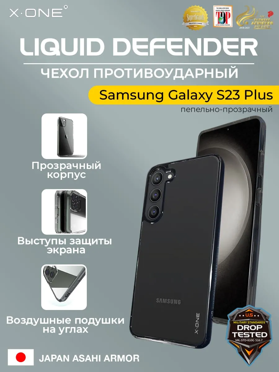 Чехол Samsung Galaxy S23 Plus X-ONE Liquid Defender - пепельно-прозрачный
