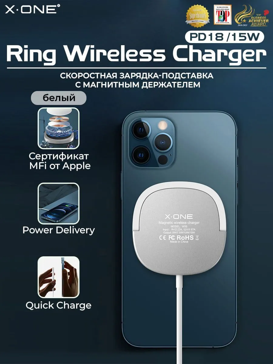 Магнитная быстрая зарядка X-ONE Magnetic Wireless Charger - белый / поддержка Power Delivery и Quick Сharge