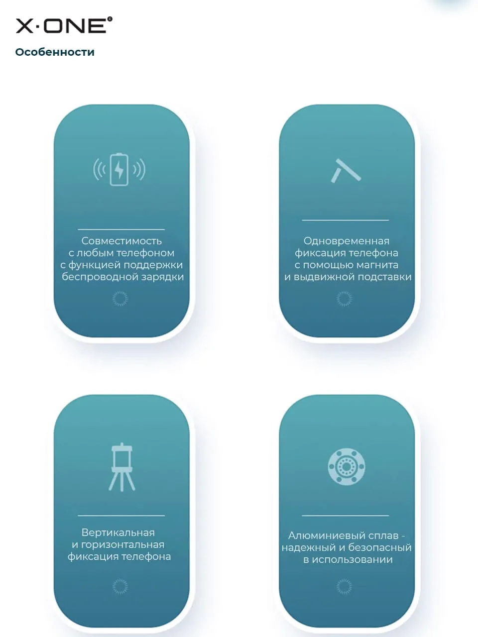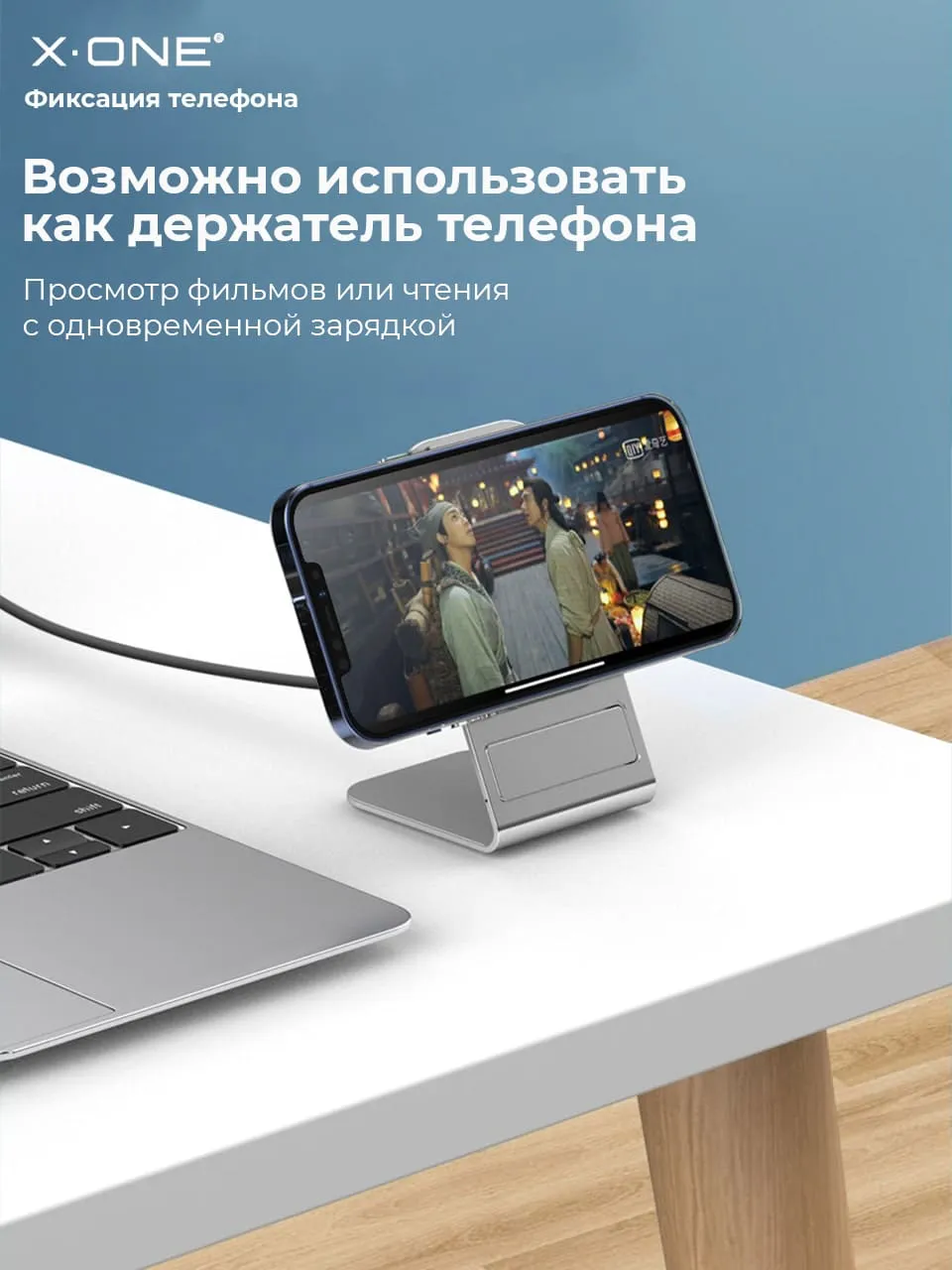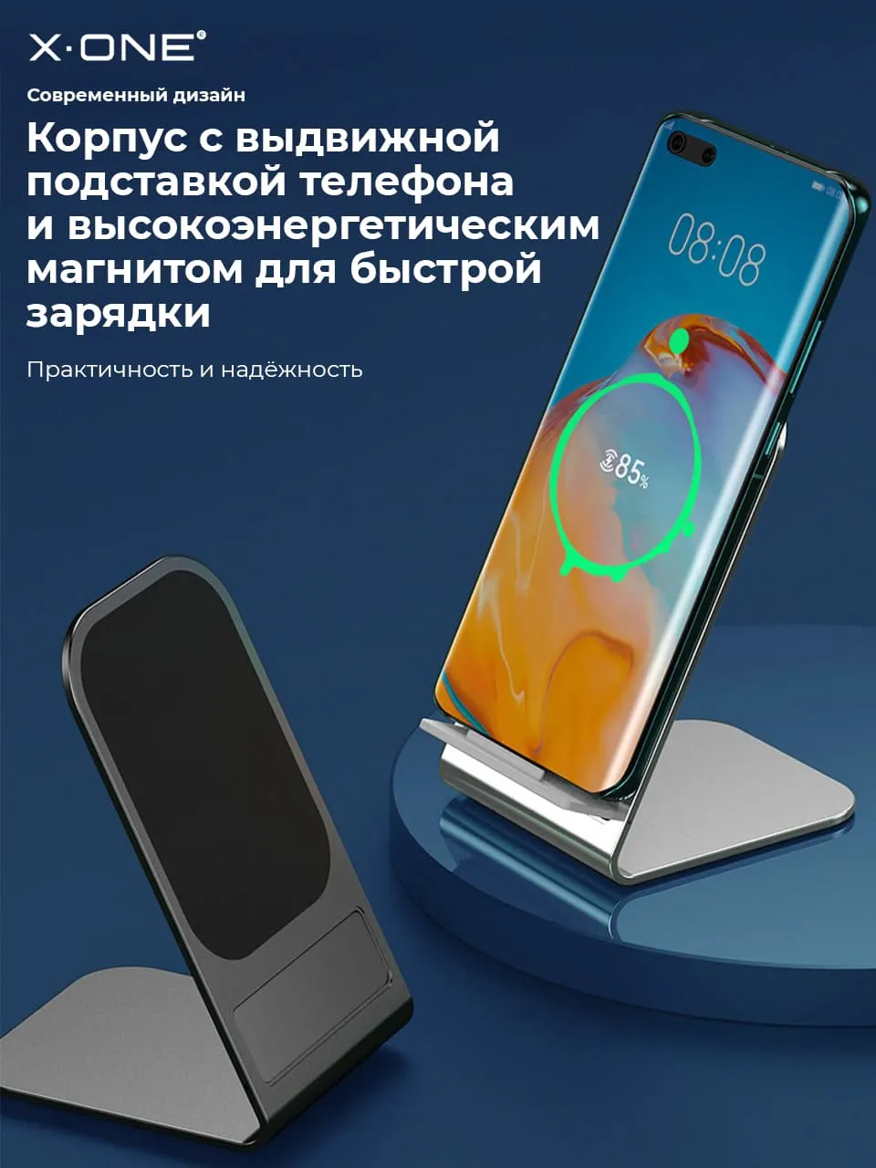 Беспроводная зарядка X-ONE Multi-function Wireless Charger с притягивающим магнитом и выдвижной подставкой смартфона для удобного просмотра контента во время зарядки в горизонтальном или вертикальном положении.