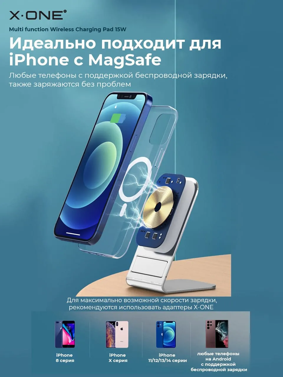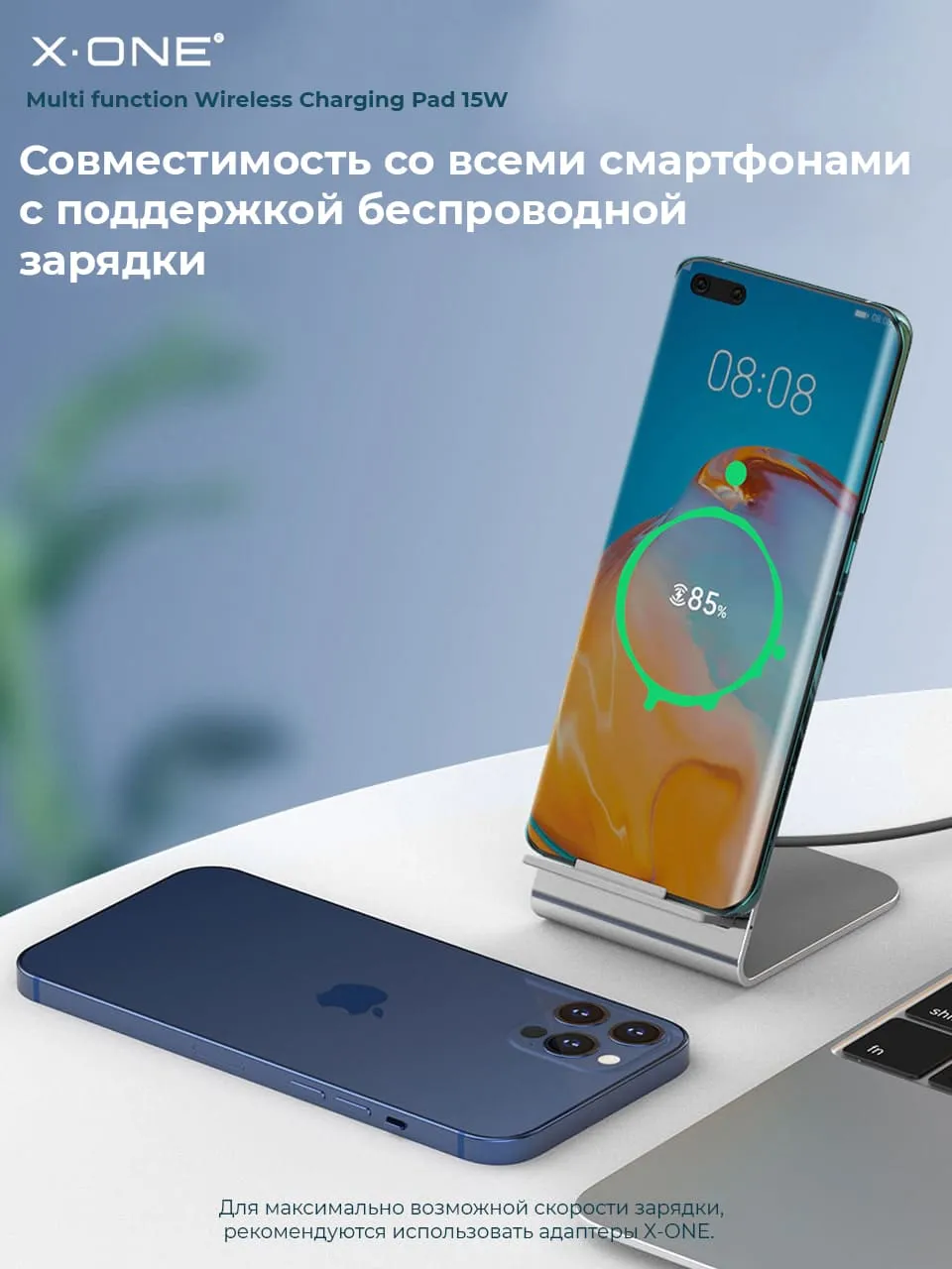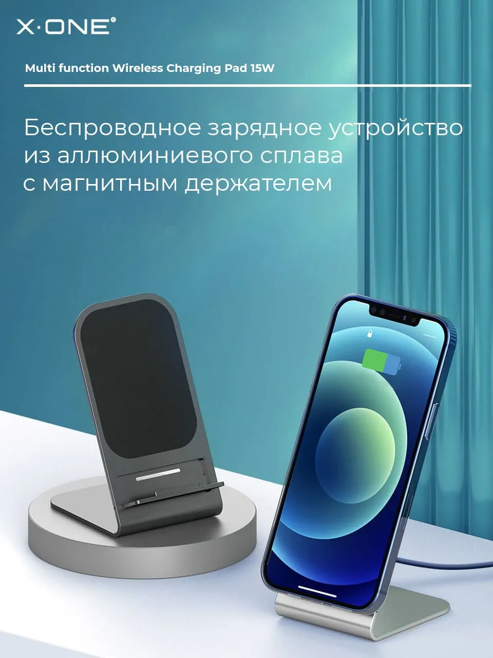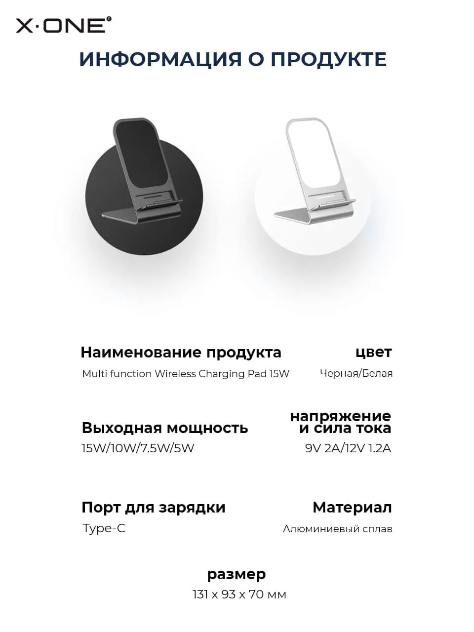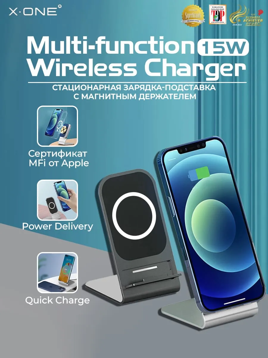 Беспроводная быстрая зарядка X-ONE Multi-function Wireless Charger 15W / стационарная с подставкой / поддержка iPhone и Android