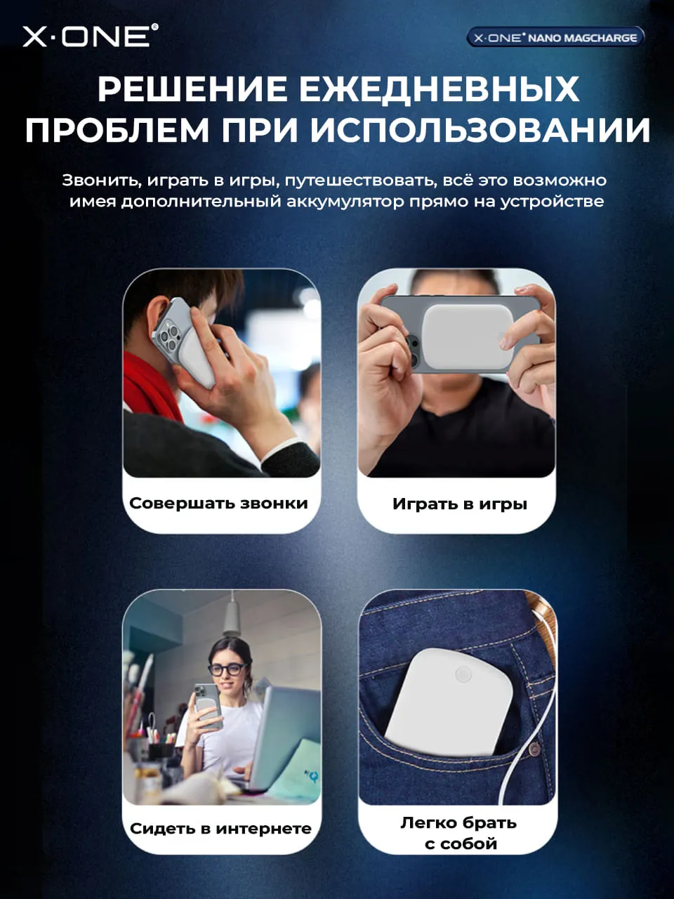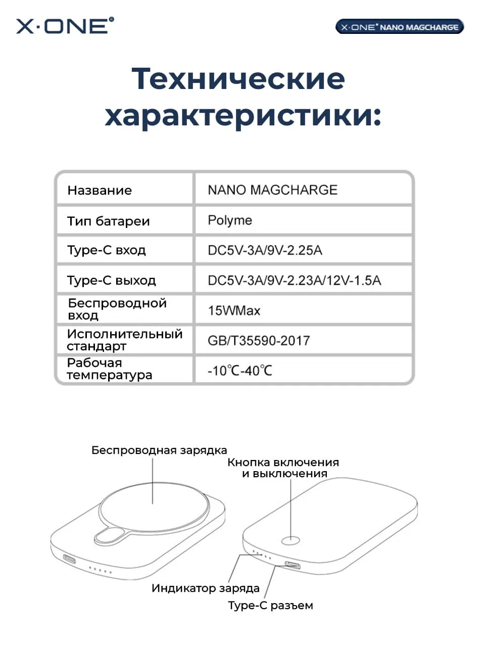 - Комплектация: Фирменная упаковка X-ONE, беспроводной повербанк - 1 шт., кабель Type-C - 1 шт.