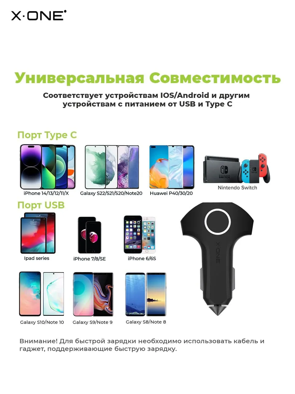 Зарядка в прикуриватель - совместима со всеми моделями телефонов и гаджетов Apple / iPhone / iPad / Galaxy / Tab / Honor / Huawei / Xiaomi и др.
