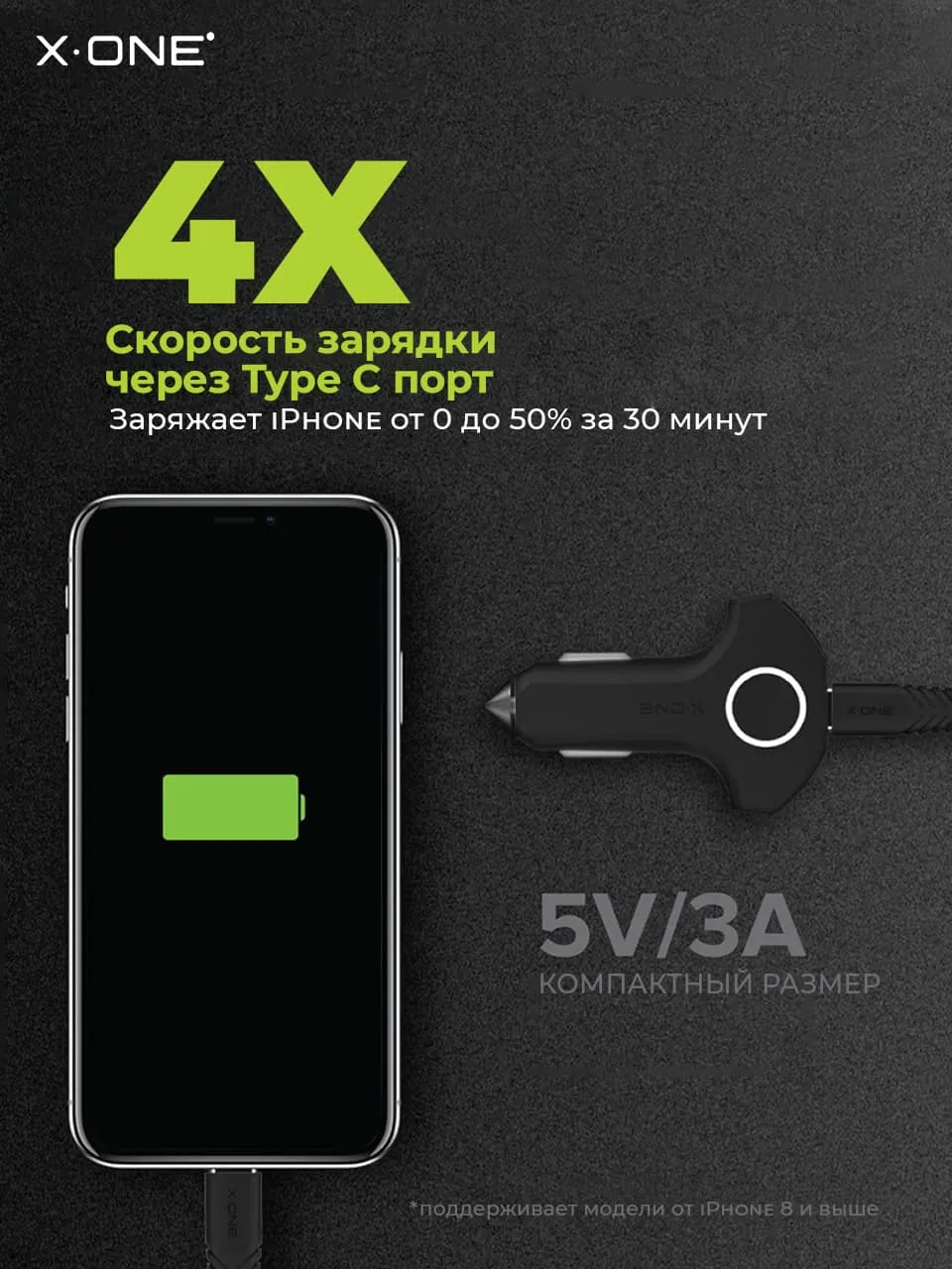 Автомобильная быстрая зарядка — блок питания X-ONE Car Charger Power Move 360.