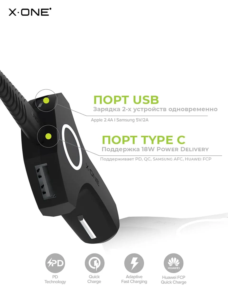 Быстрозарядный автомобильный блок питания включает в себя все самые востребованные и передовые технологии быстрой зарядки: Power Delivery, Quick Сharge, Huawei FCP и др.