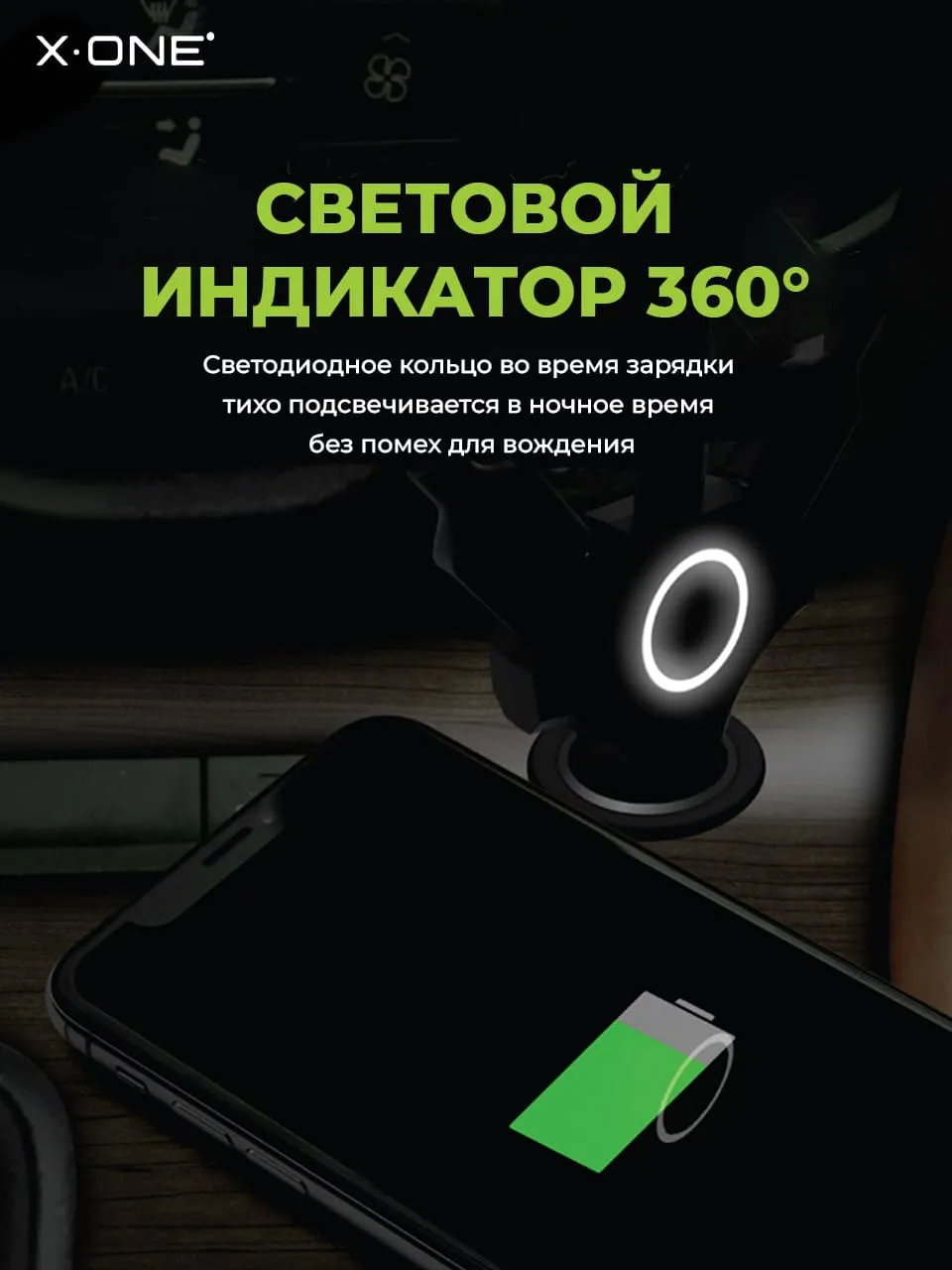 Световой индикатор с холодным светом, покажет статус зарядки ваших девайсов не отвлекая на себя внимания.