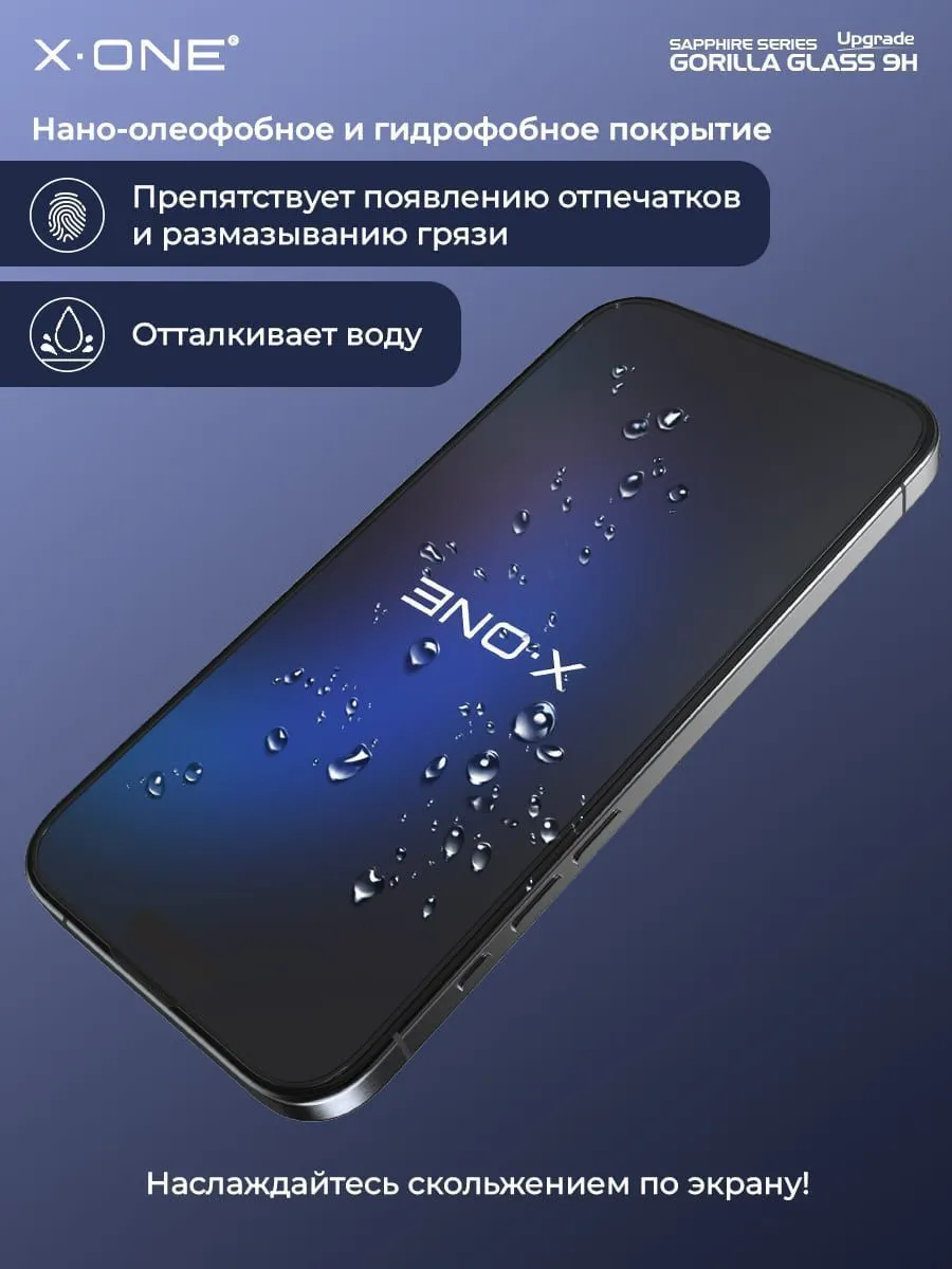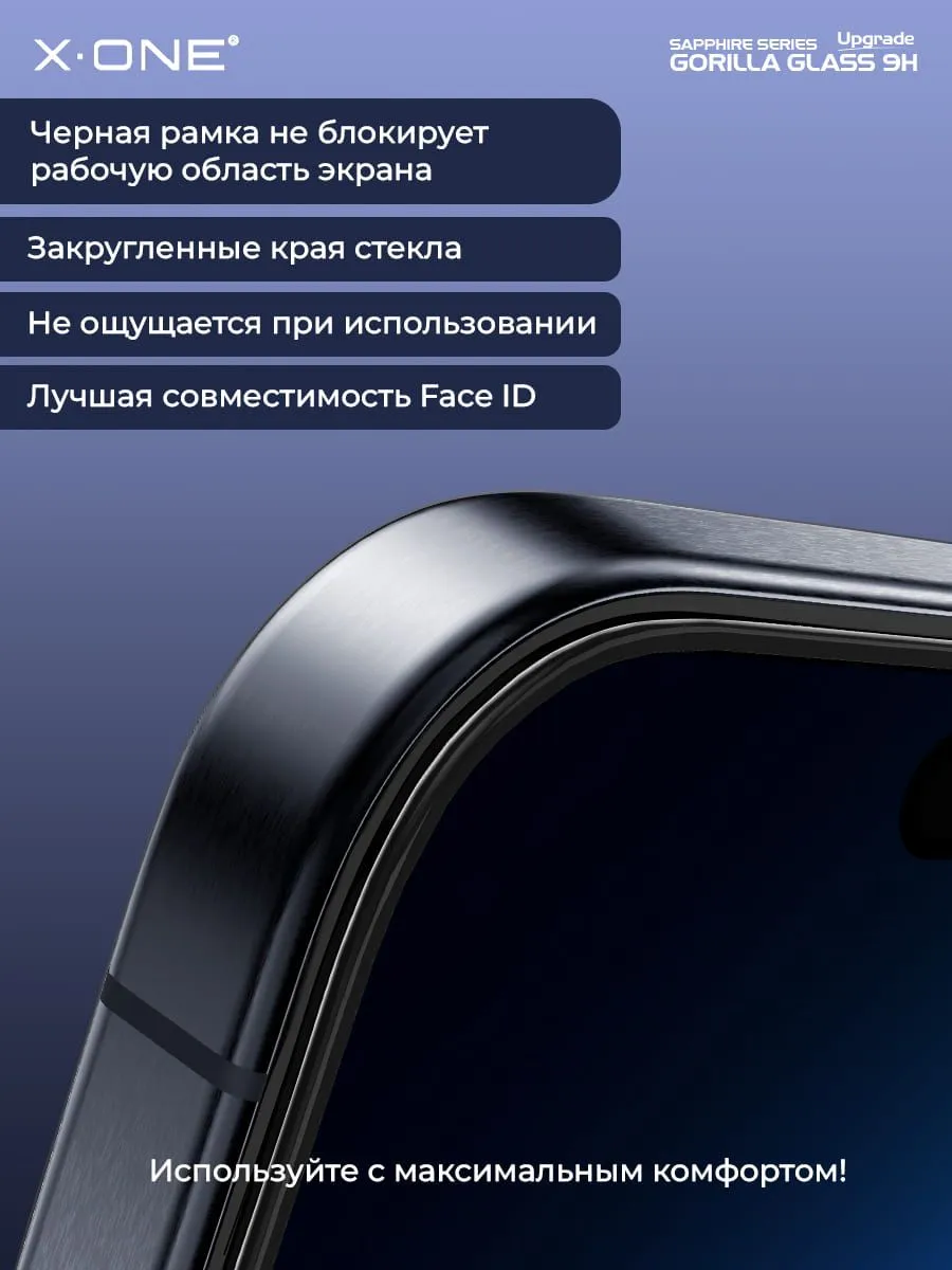 Сапфировое стекло X-ONE Sapphire 9H (upgrade), толщиной всего 0.2мм., с фильтром защиты динамика и капсулой/локатором для легкой и ровной установки без остатков пыли - защитное стекло.