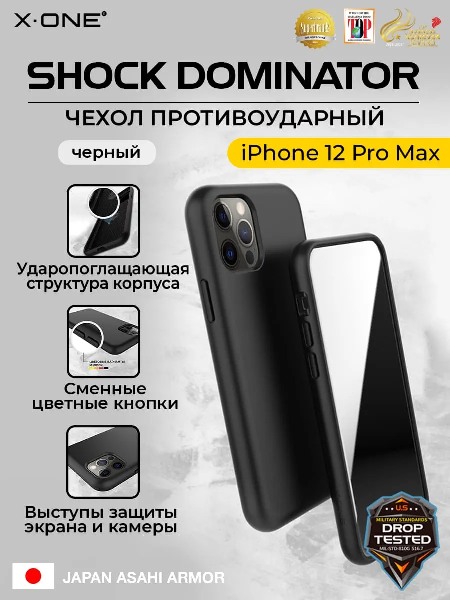 Чехол iPhone 12 Pro Max X-ONE Shock Dominator - черный закрытый матовый Soft Touch корпус и сменные цветные кнопки в комплекте