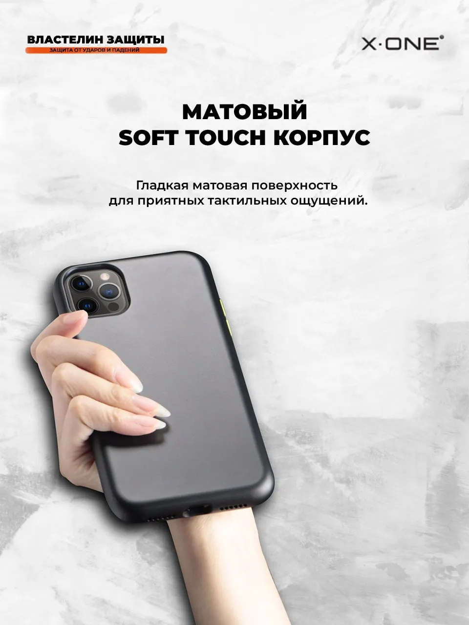 - Особенности: закрытый-матовый Soft-Touch корпус, защита от ударов, защита от царапин, противоударные подушки на углах, сменные цветные кнопки, специальные выступы для защиты камеры и экрана, ударопоглащающая структура корпуса