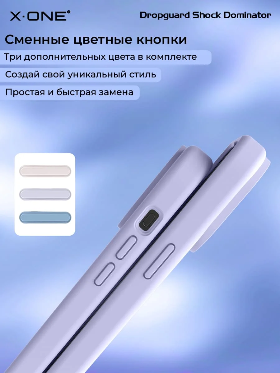 Противоударный чехол X-ONE Shock Dominator с матовым Soft-Touch корпусом и сменными цветными кнопками в комплекте.