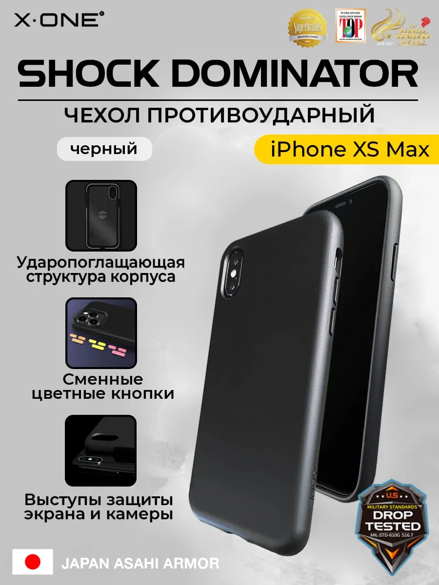 Чехол iPhone XS Max X-ONE Shock Dominator - черный закрытый матовый Soft Touch корпус и сменные цветные кнопки в комплекте