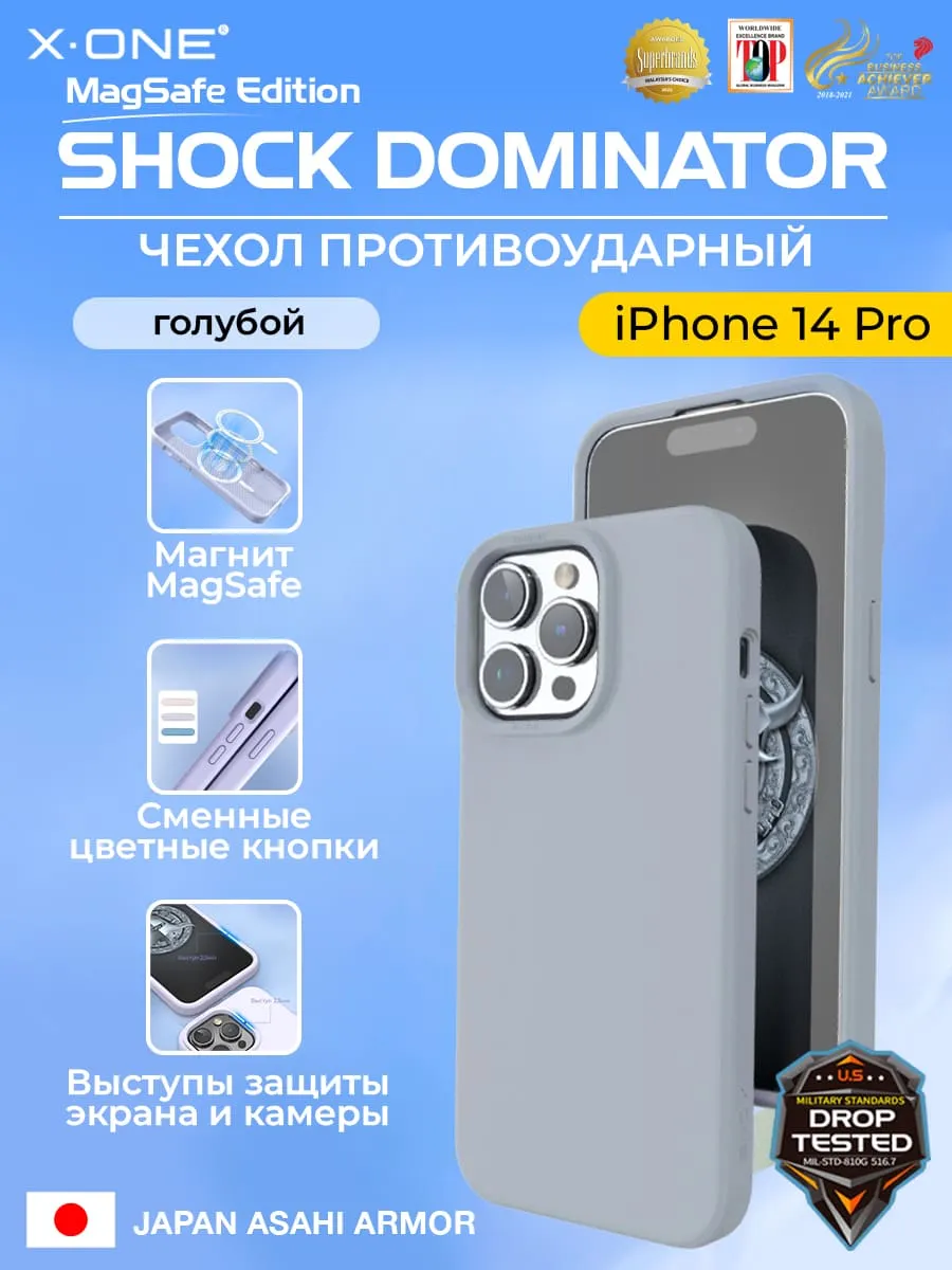 Чехол iPhone 14 Pro X-ONE Shock Dominator MagSafe - голубой закрытый матовый Soft Touch корпус и сменные цветные кнопки в комплекте