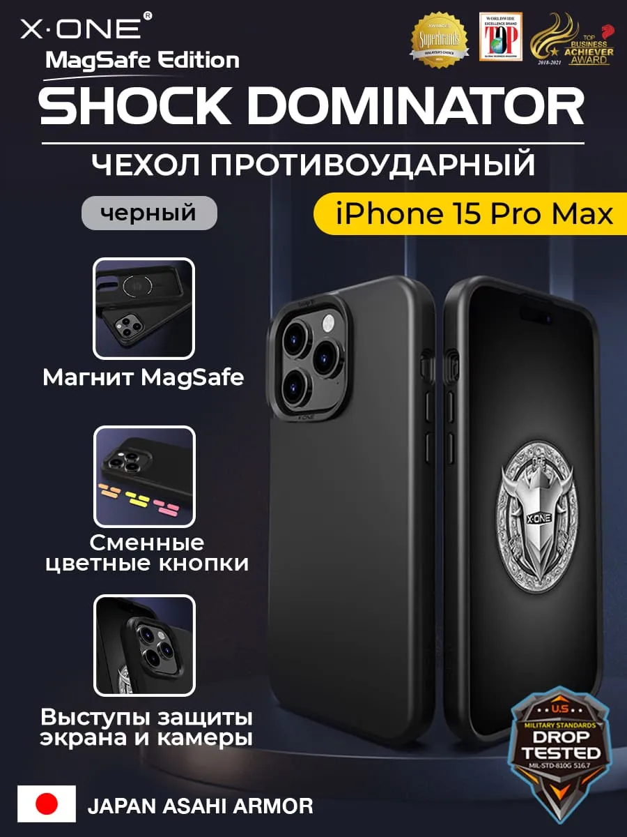 Чехол iPhone 15 Pro Max X-ONE Shock Dominator MagSafe - черный закрытый матовый Soft Touch корпус и сменные цветные кнопки в комплекте