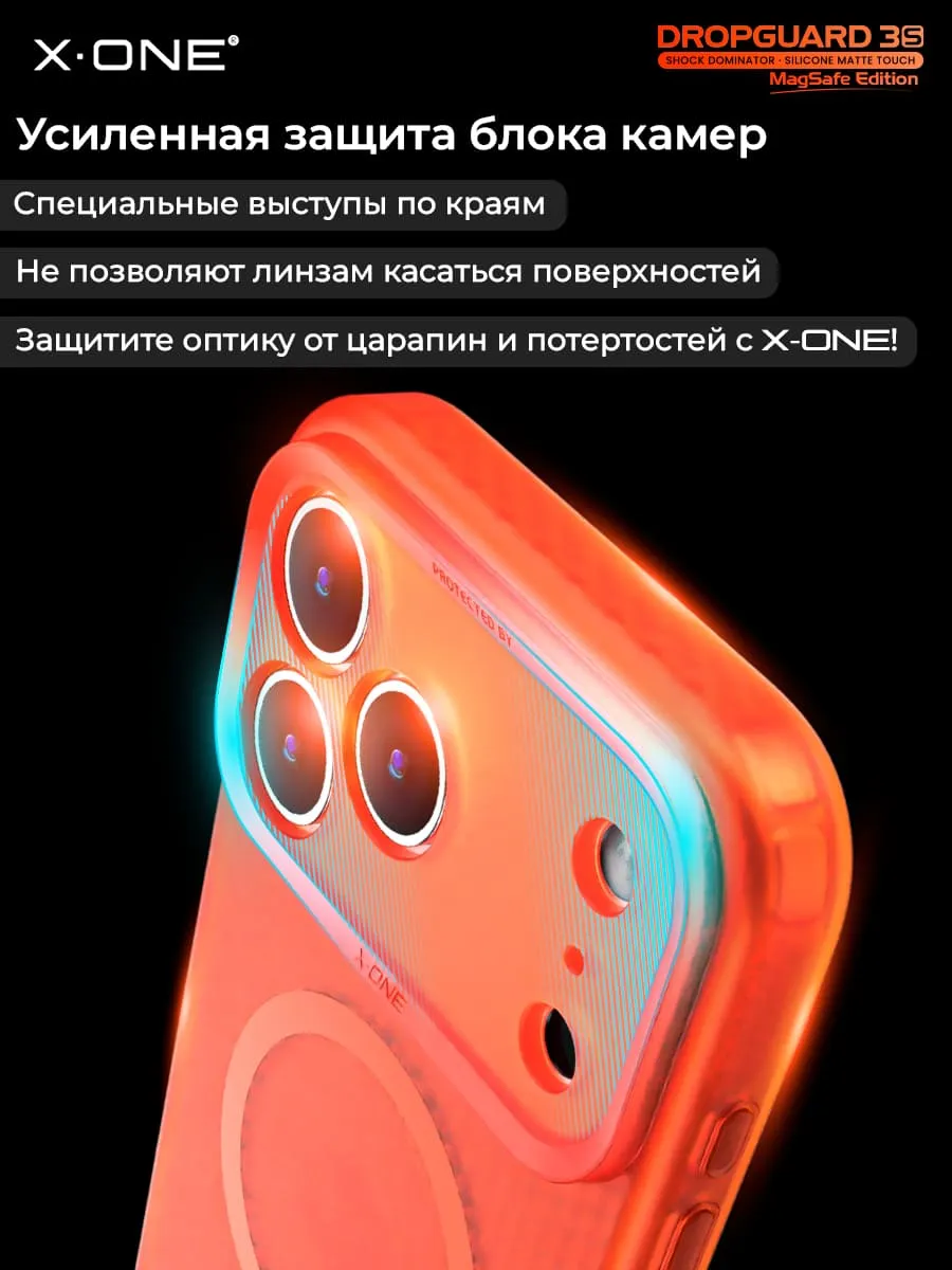 Чехол iPhone 17 Air X-ONE DropGuard 3S - оранжевый матовый Soft Touch корпус и сменные цветные кнопки в комплекте