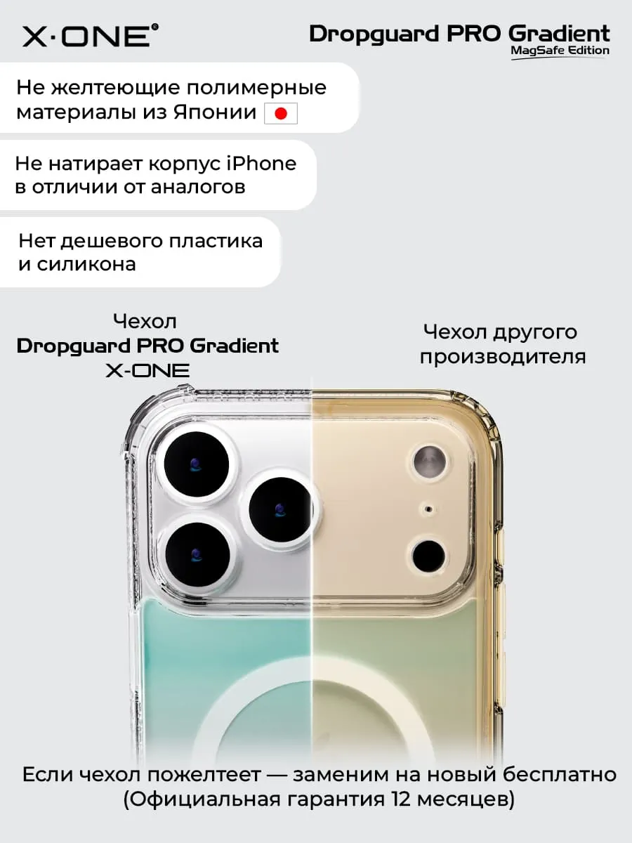 Чехол iPhone 17 Pro Max X-ONE DropGuard PRO Gradient MagSafe - северное сияние задняя панель и текстурированный прозрачный корпус