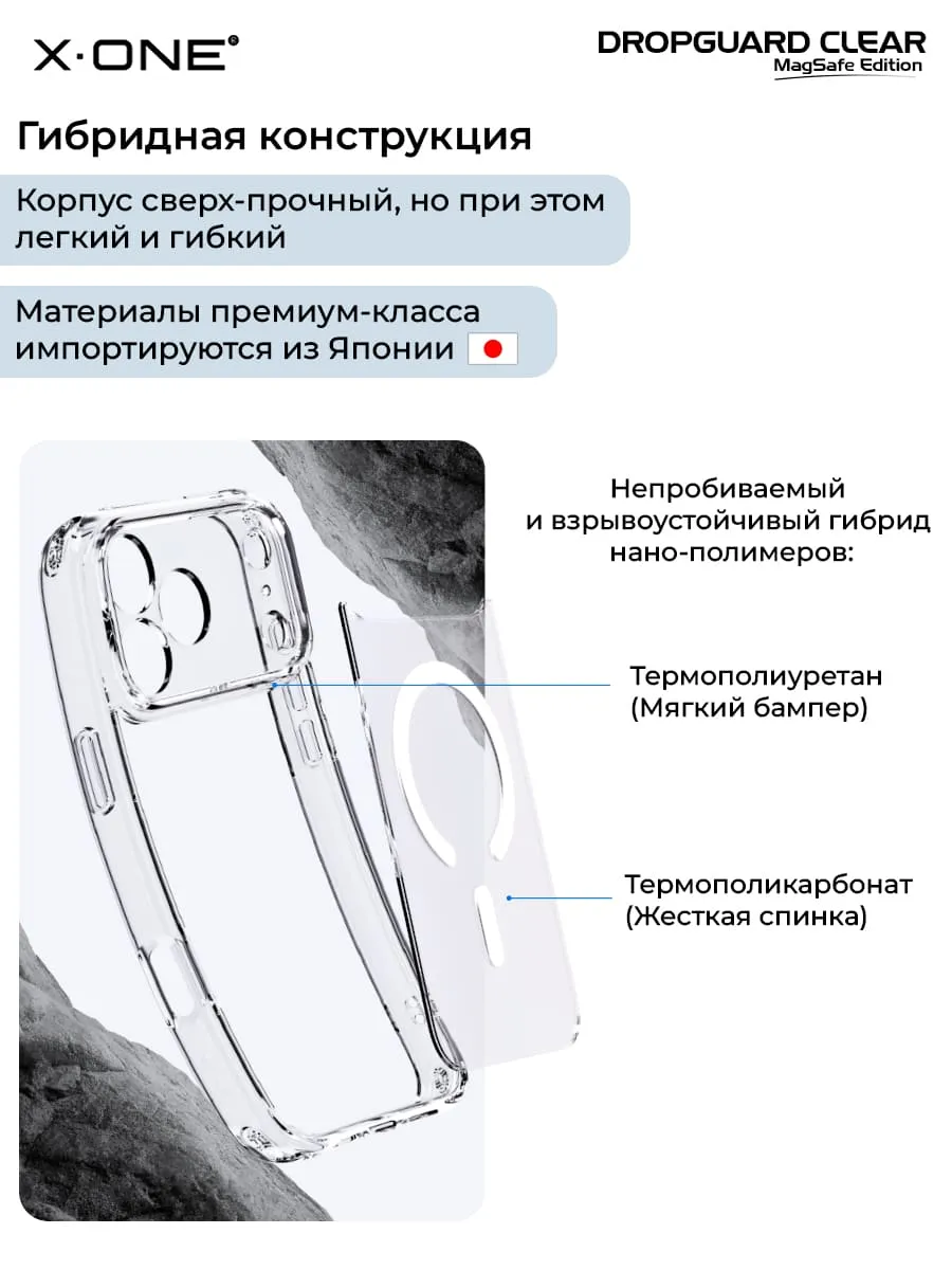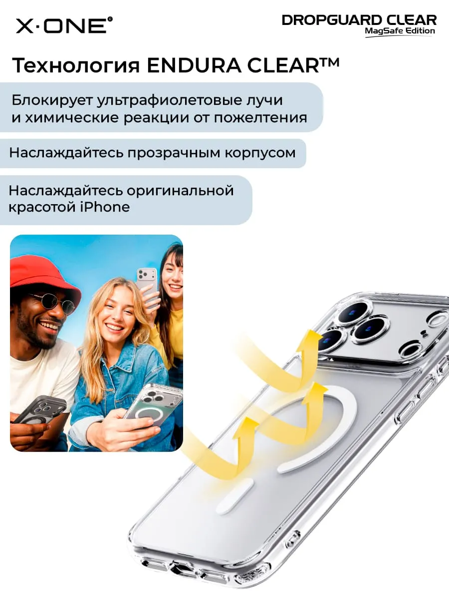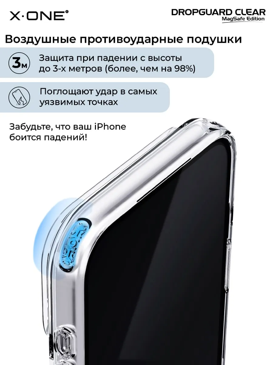 Чехол iPhone 17 Pro Max X-ONE Droguard Clear MagSafe - кристально-прозрачный