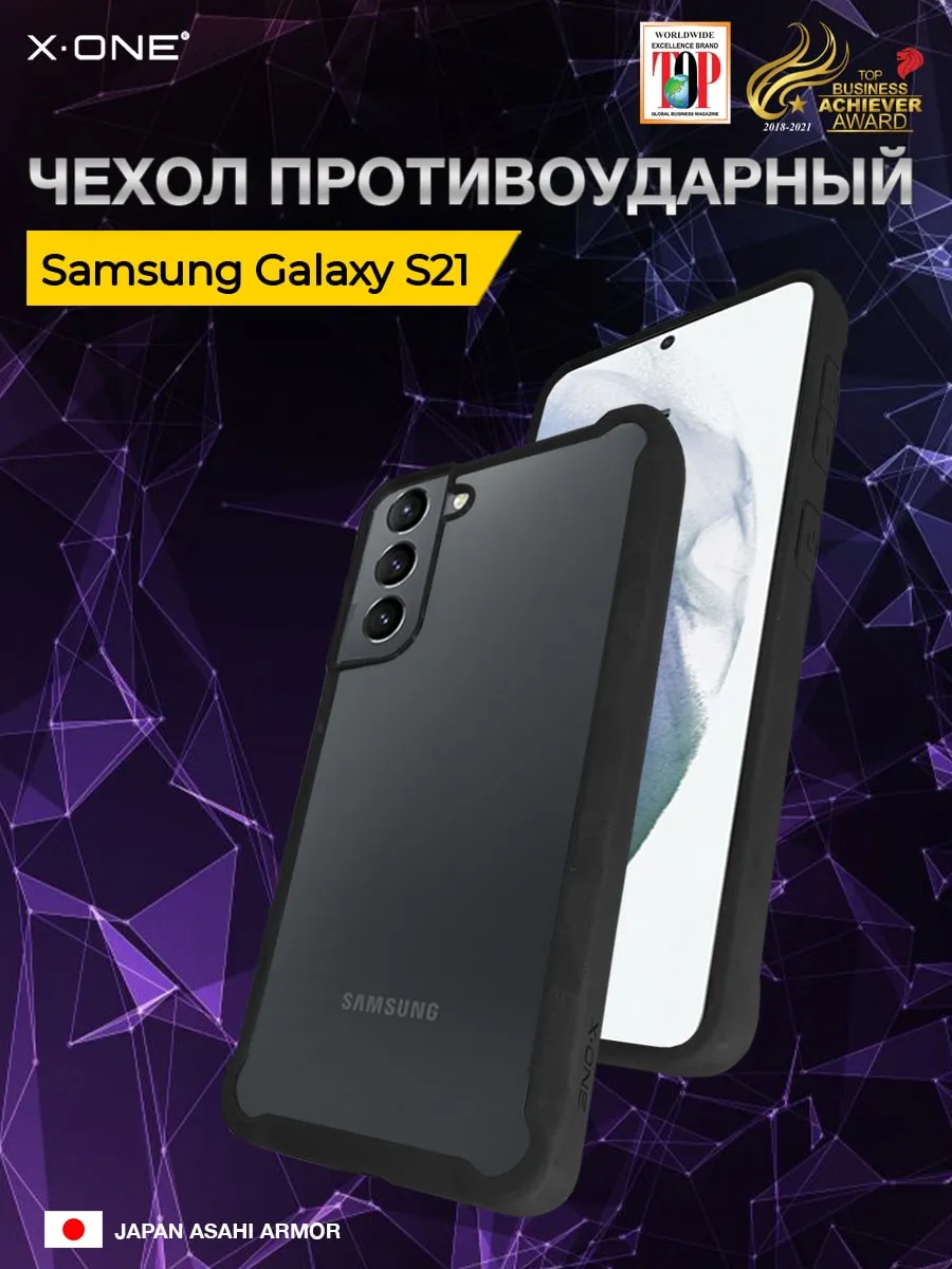 Чехол Samsung S21 X-ONE DropGuard 2.0 - прозрачная задняя панель и черный матовый Soft Touch бампер