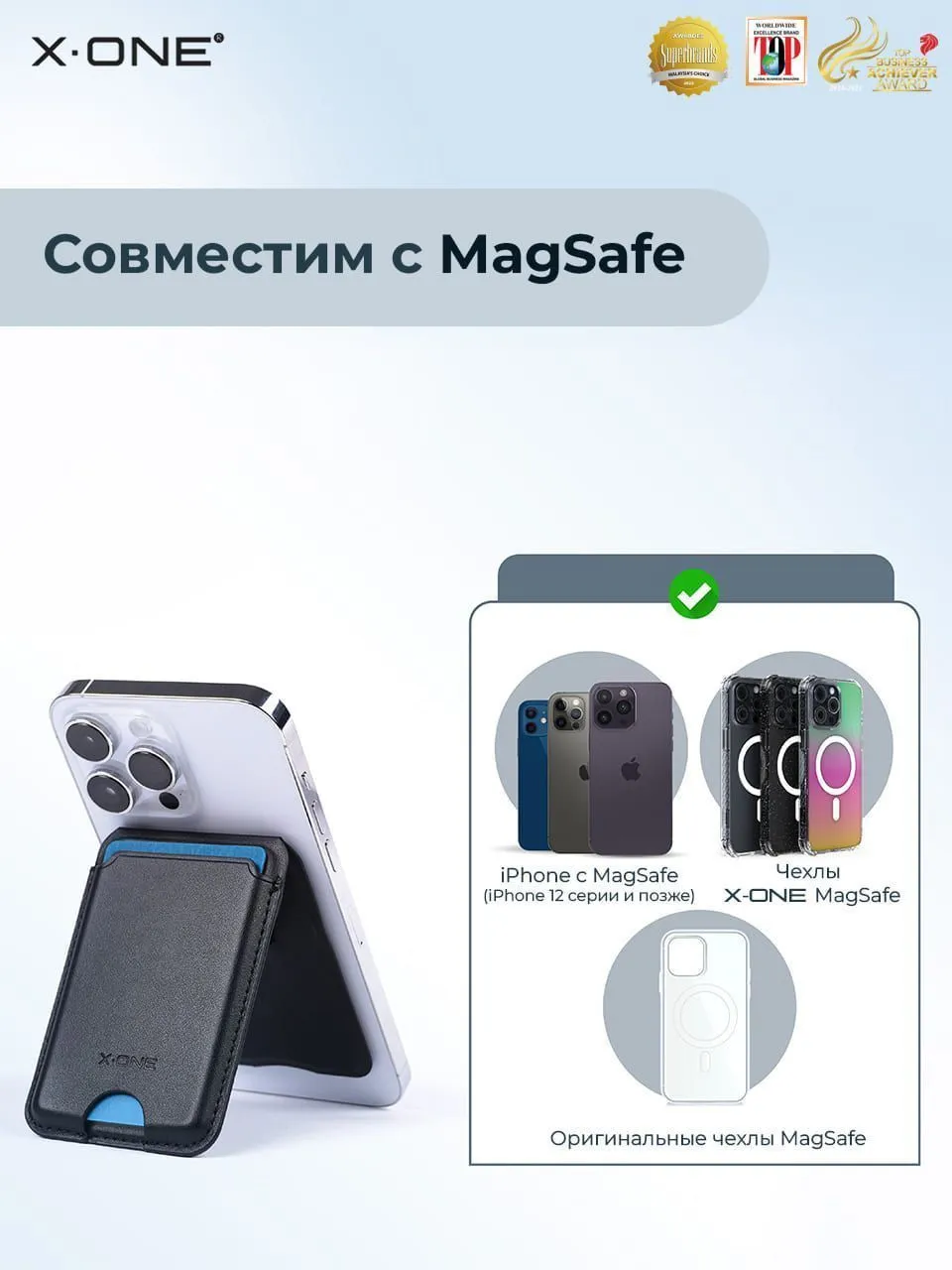 Магнитный картхолдер для MagSafe iPhone прочно крепится к задней панели, обеспечивая надежную защиту и удобство использования, магнитится к iPhone с MagSafe или чехлам с магнитом для MagSafe.