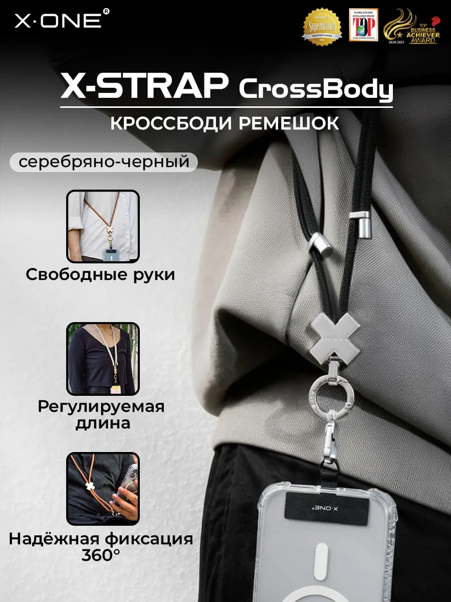 Кроссбоди-ремень X-ONE X-Strap CrossBody для телефона 75см. - серебряно-черный