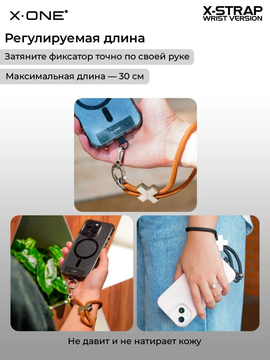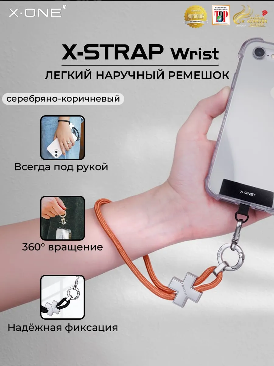 Ремень X-ONE X-Strap Wrist для телефона на руку 18.5см. - серебряно-коричневый